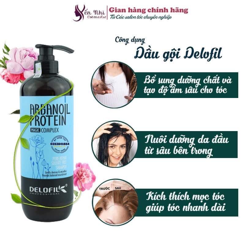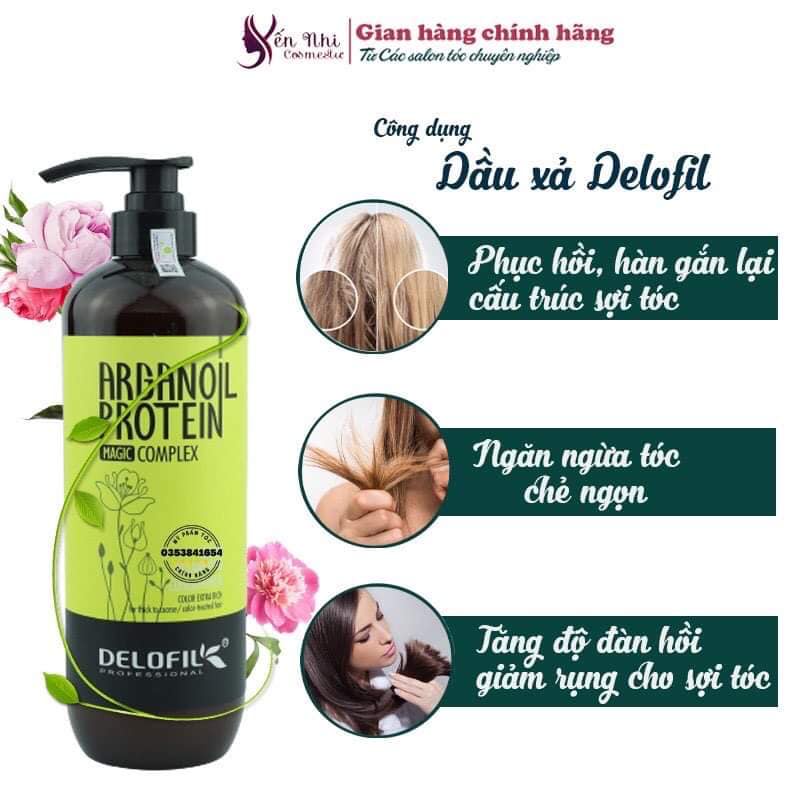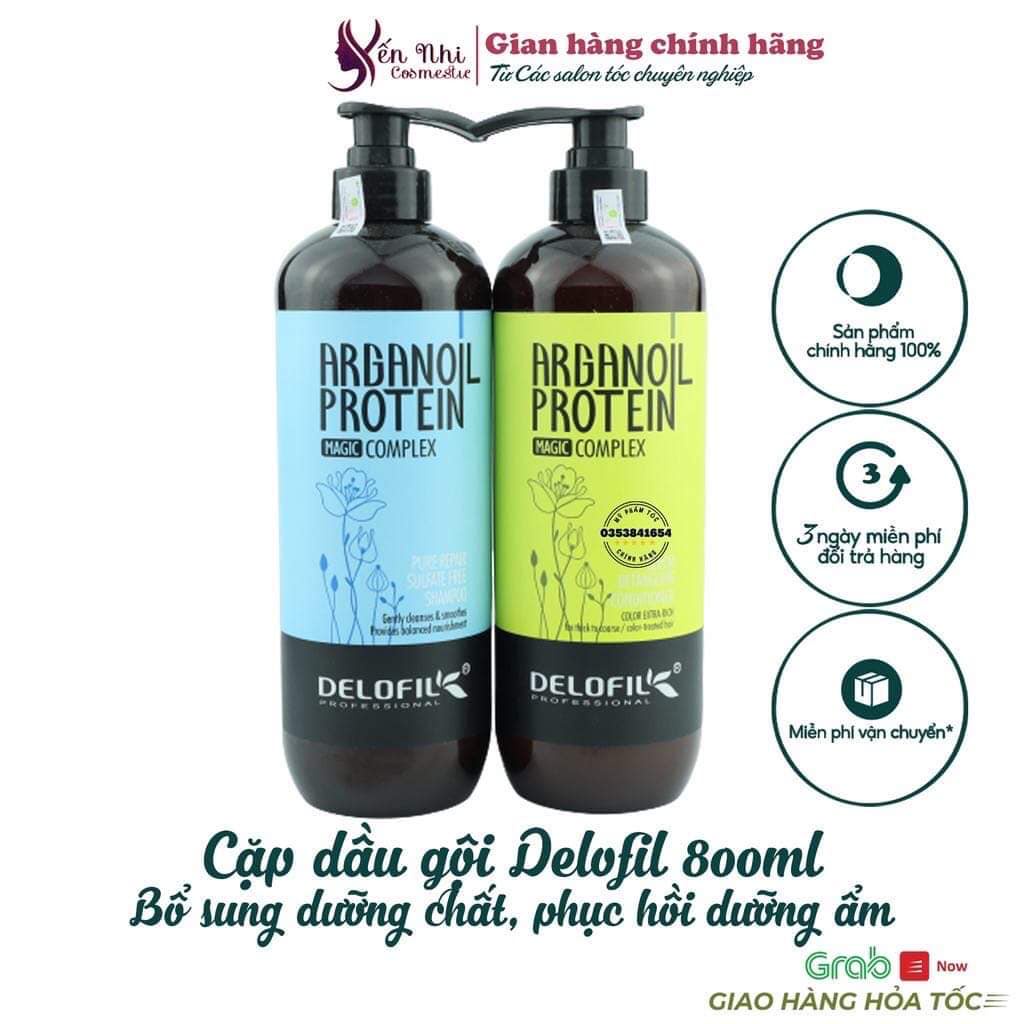 Cặp dầu gội xả Delofil Arganoil Protein 800ml *2 Giảm Gãy Rụng, Phục Hồi Tóc Hư Tổn, Khô Xơ. HÀNG CHÍNH HÃNG ALYA