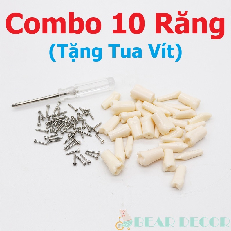 [Hỏa Tốc] Combo 10 Răng Nhựa Mài Cùi - Răng Nhựa Thực Hành Nha Khoa Đủ Vị Trí - Tặng Tua Vít Ốc Vít