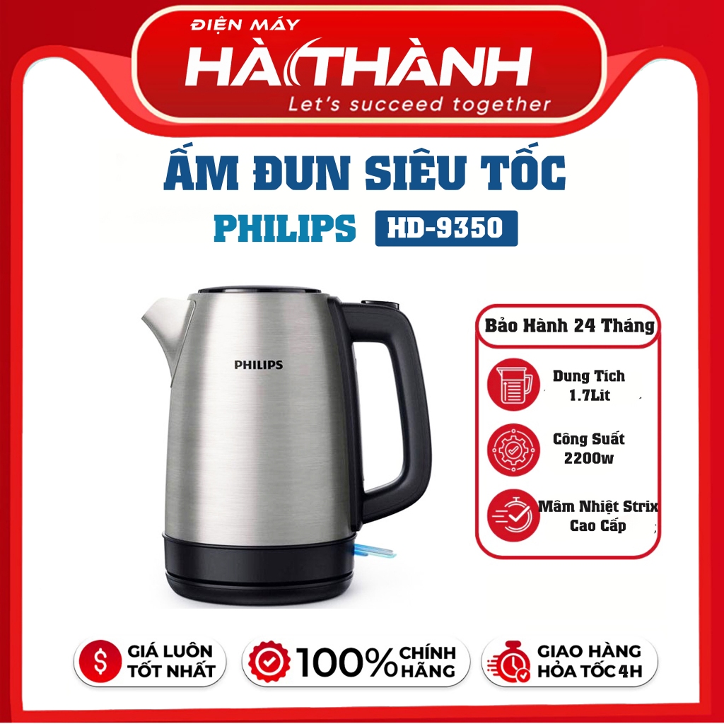 Ấm Đun Siêu Tốc Philips HD9350/90, 2200w - 1.7Lit, Mâm Nhiệt Strix Siêu Bền, Hàng Chính Hãng