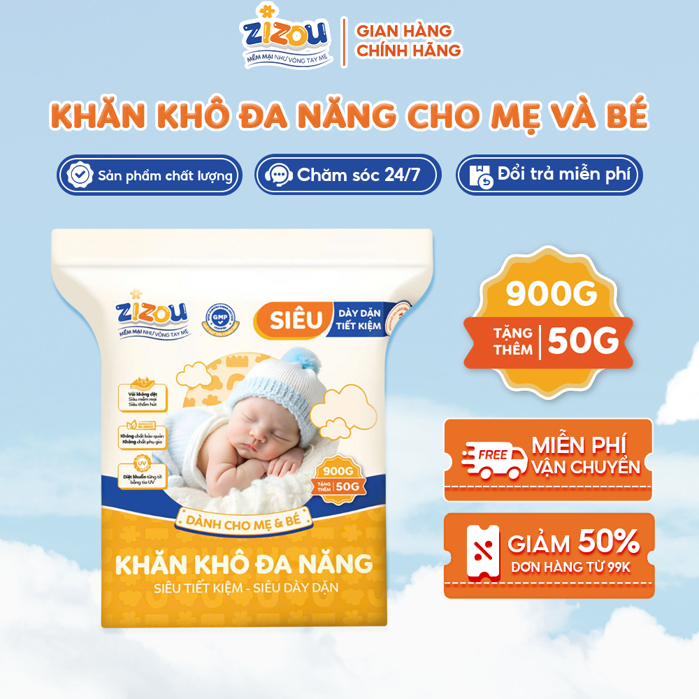 Khăn vải khô đa năng ZIZOU 650G+950G Cao cấp dành cho mẹ và bé dùng thay khăn sữa An toàn, tiện lợi cho mẹ