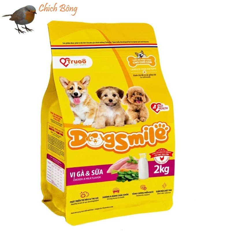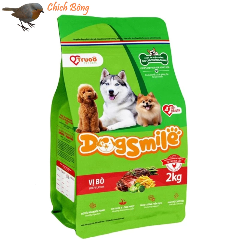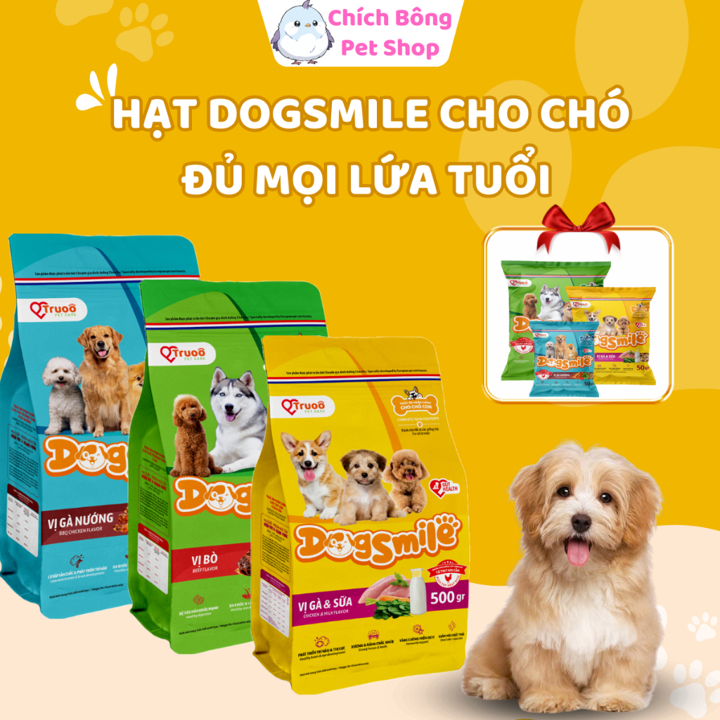 Thức ăn cho chó DogSmile, Hạt cho chó con vị gà sữa, chó trưởng thành vị bò, vị gà nướng Dogsmile
