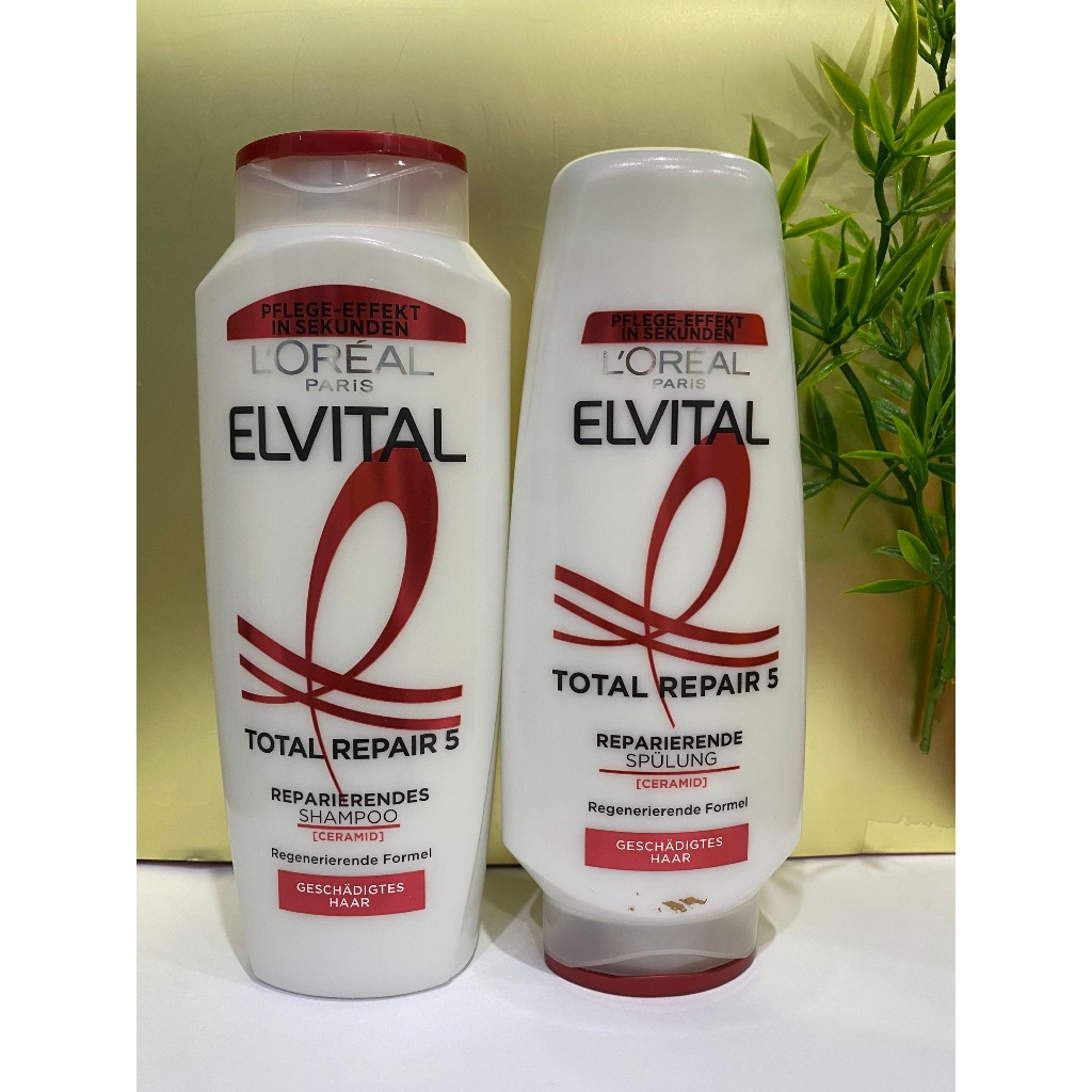 Bộ Dầu gội 300ml xả 250ml Loreal Elvital trắng phục hồi hư tổn, thích hợp cho tóc bị xơ và khô