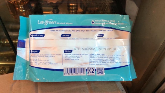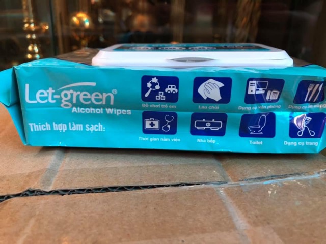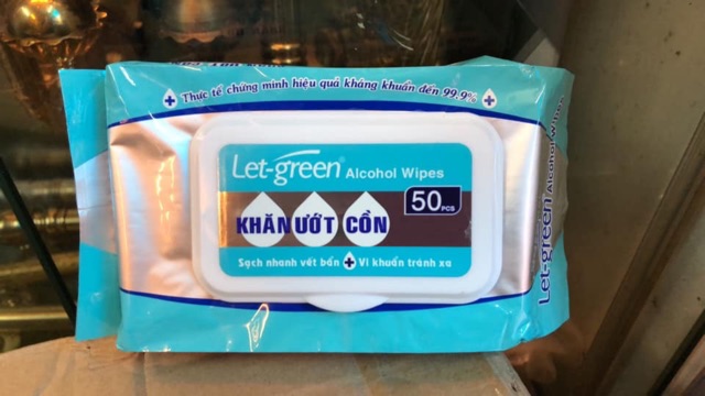 KHĂN ƯỚT CỒN Let-green 50 miếng Diệt khuẩn 99,9%