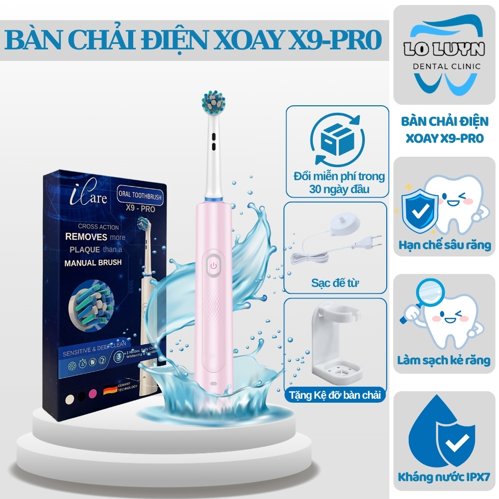 Bàn chải xoay Oral ICare X9-Pro ,bàn chải điện làm bóng răng, kháng nước IPX7, sạc đế từ tính, tặng kèm kệ đỡ bàn chải