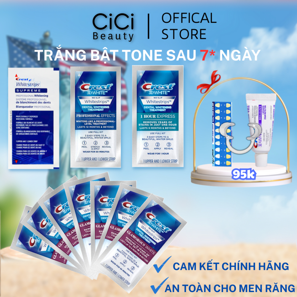 Combo 7 gói miếng dán trắng răng Crest 3D White nhập khẩu Mỹ - Trắng răng cấp tốc sau 1 liệu trình