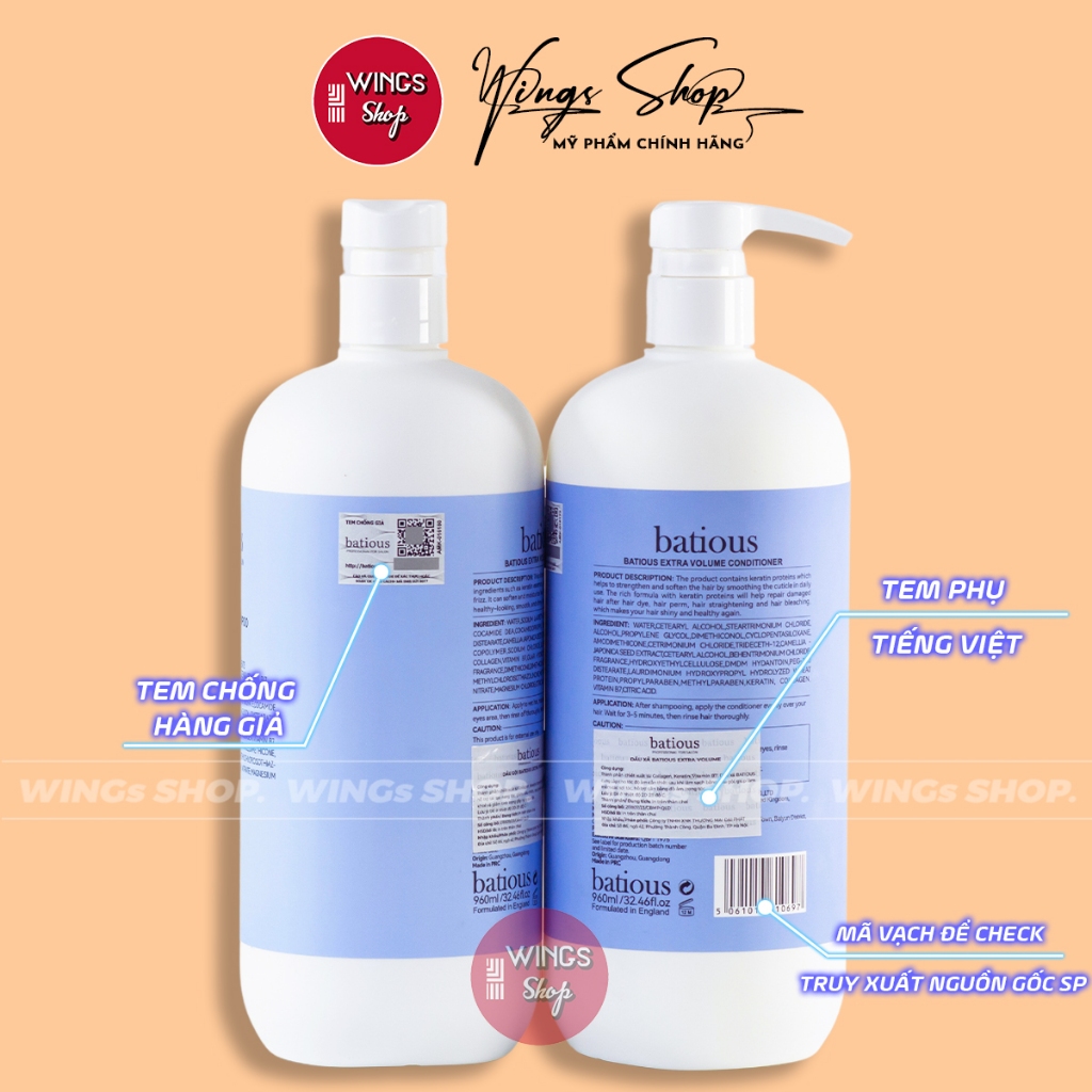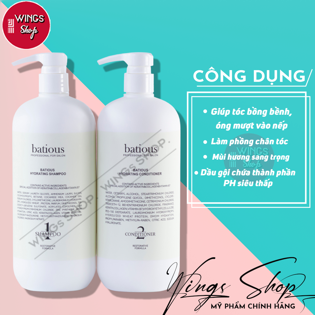 Dầu Gội, Xả Batious Trắng Dành Cho Tóc Khô Xơ, Dưỡng Ẩm Tóc, Phục Hồi Chẻ Ngọn 500ml-960ml | Wings Shop