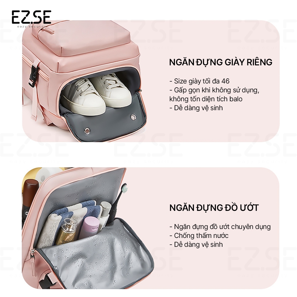 Balo du lịch chống nước có ngăn đựng giày riêng EAZY BLA08 , Balo laptop chống sốc cao cấp đựng vợt cầu lông