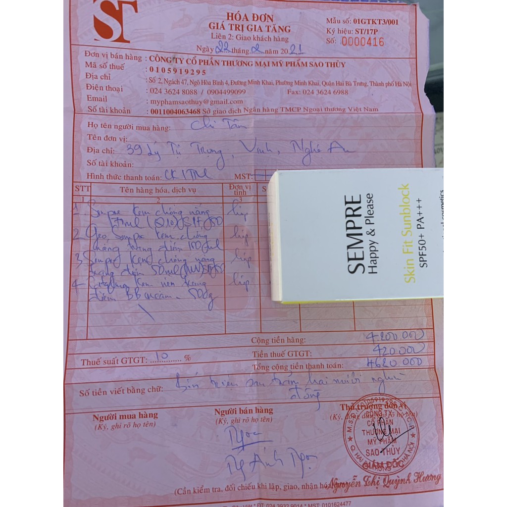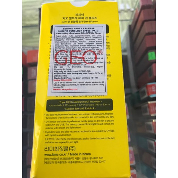 [Chính Hãng]Kem Chống Nắng t Geo Lamy Sempre Happy & Please Skin Fit Sunblock SPF50+ PA+++ 50ml