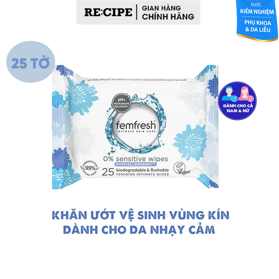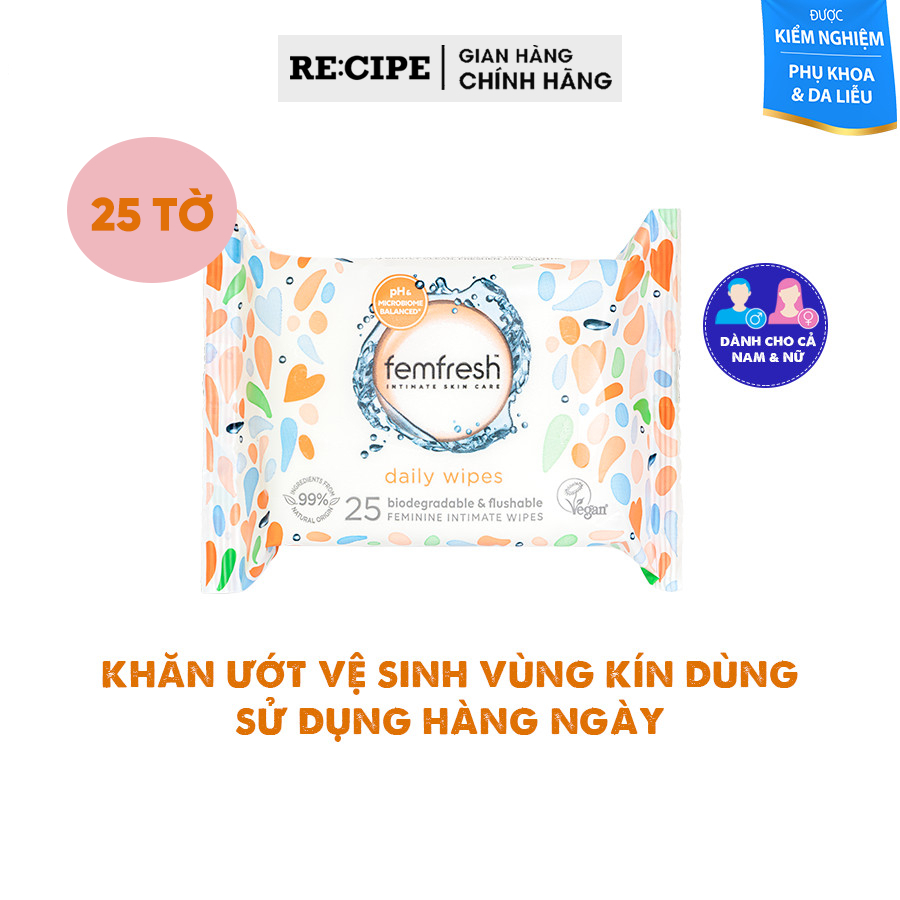 Khăn giấy ướt vệ sinh vùng kín phụ nữ Femfresh cao cấp Anh Quốc Feminie intimate wipes 25/10 nmiếng