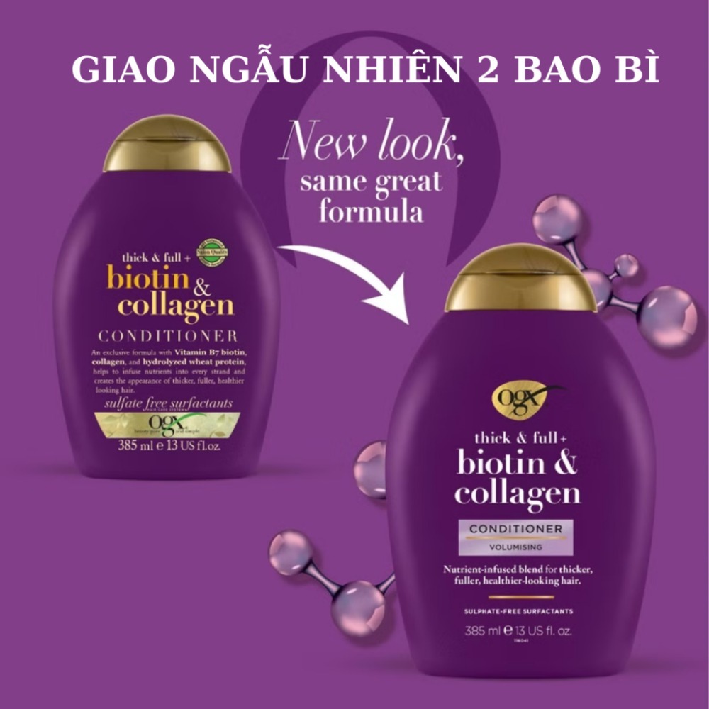 Combo Chai Dầu Gội Và Dầu Xả Dưỡng Dày Tóc OGX Thick & Full + Biotin & Collagen (385ml/Chai) (Màu Tím)