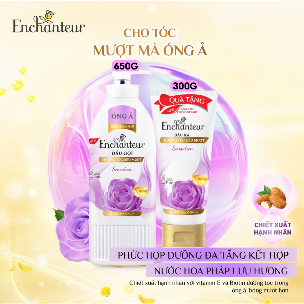 [RẺ VÔ ĐỊCH] Combo Dầu gội 600g Enchanteur tặng Dầu xả 550g dưỡng tóc mượt thơm lâu - live
