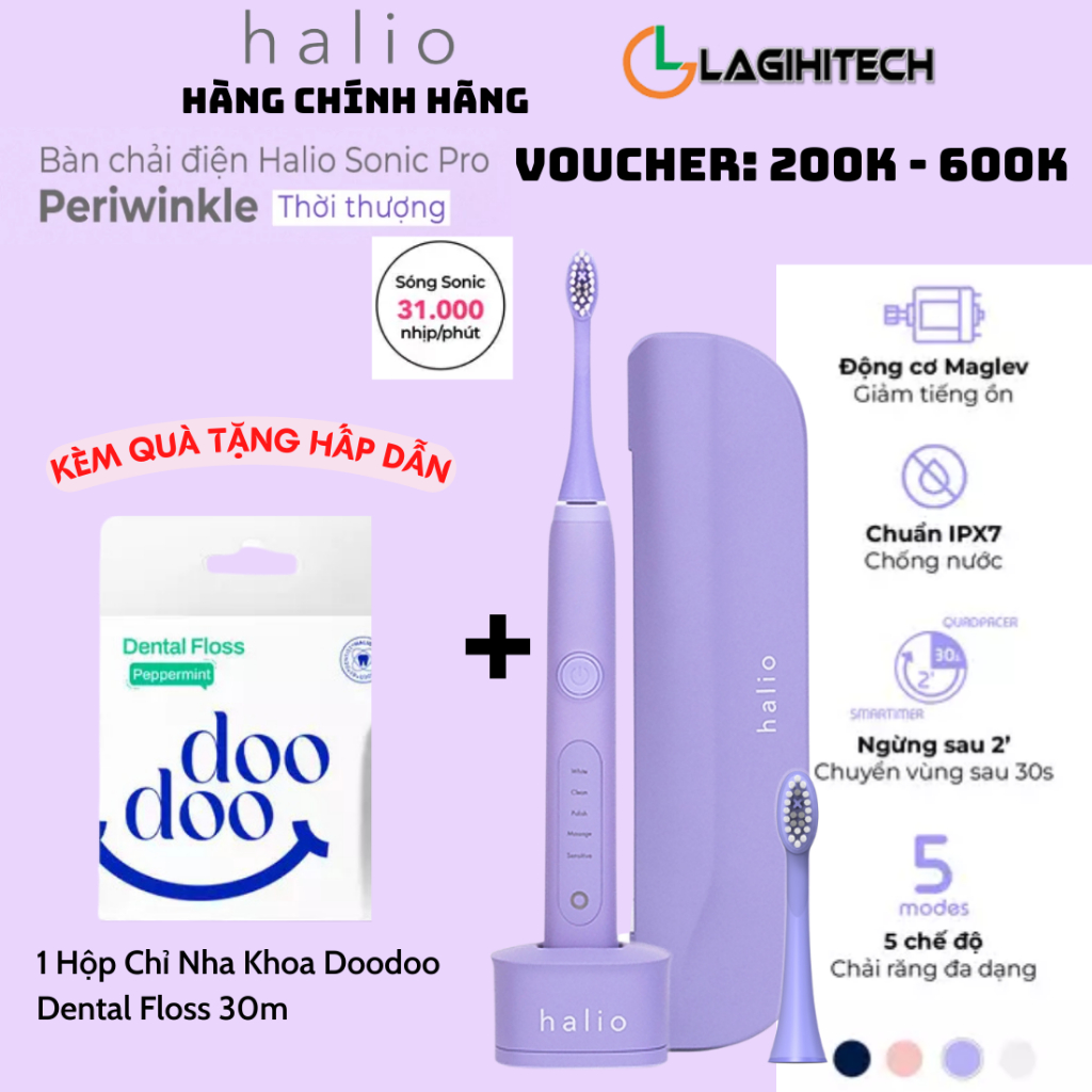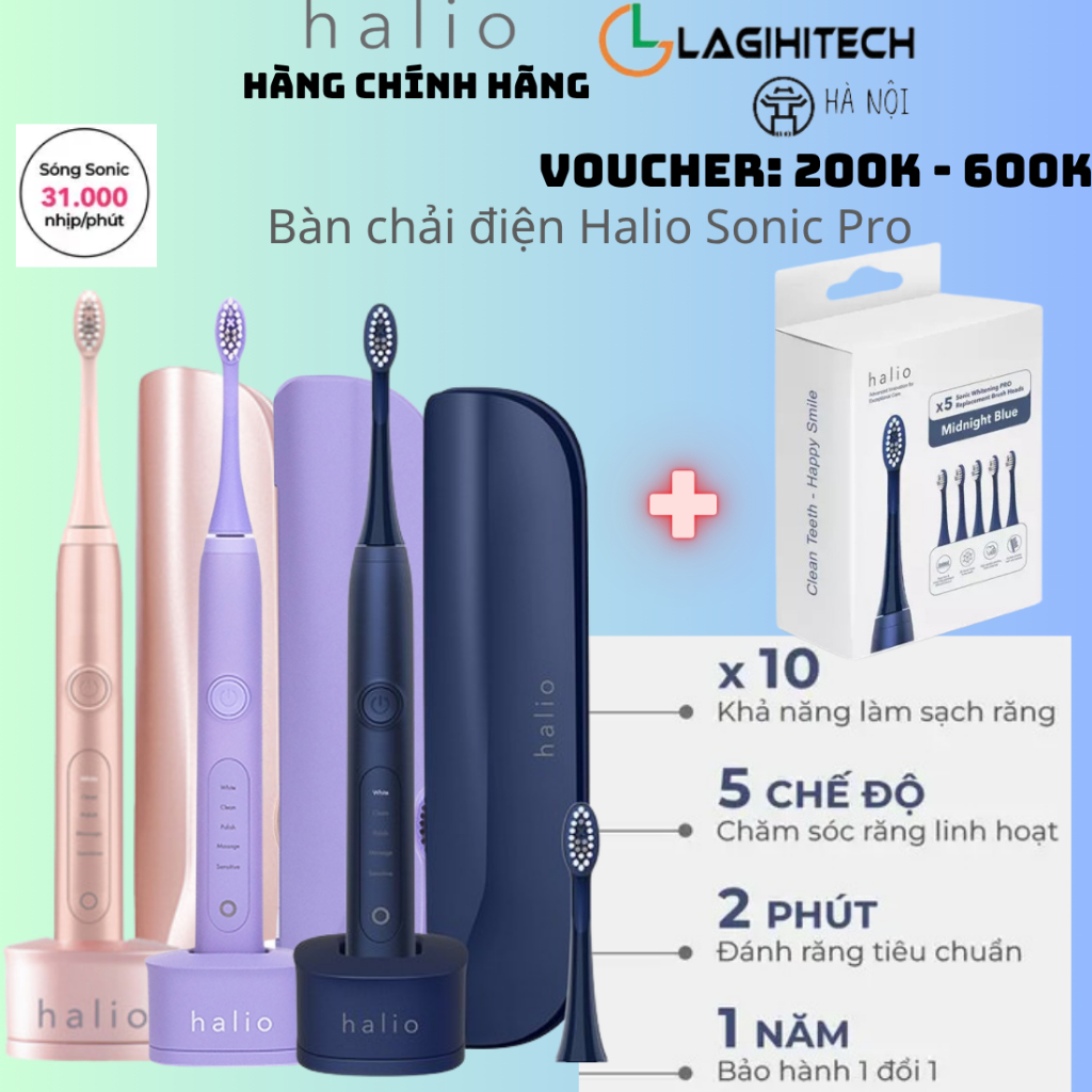 (Giá hủy diệt) Bàn Chải Điện Halio Sonic Whitening Toothbrush PRO Bảo hành 1 năm - Hàng Chính Hãng