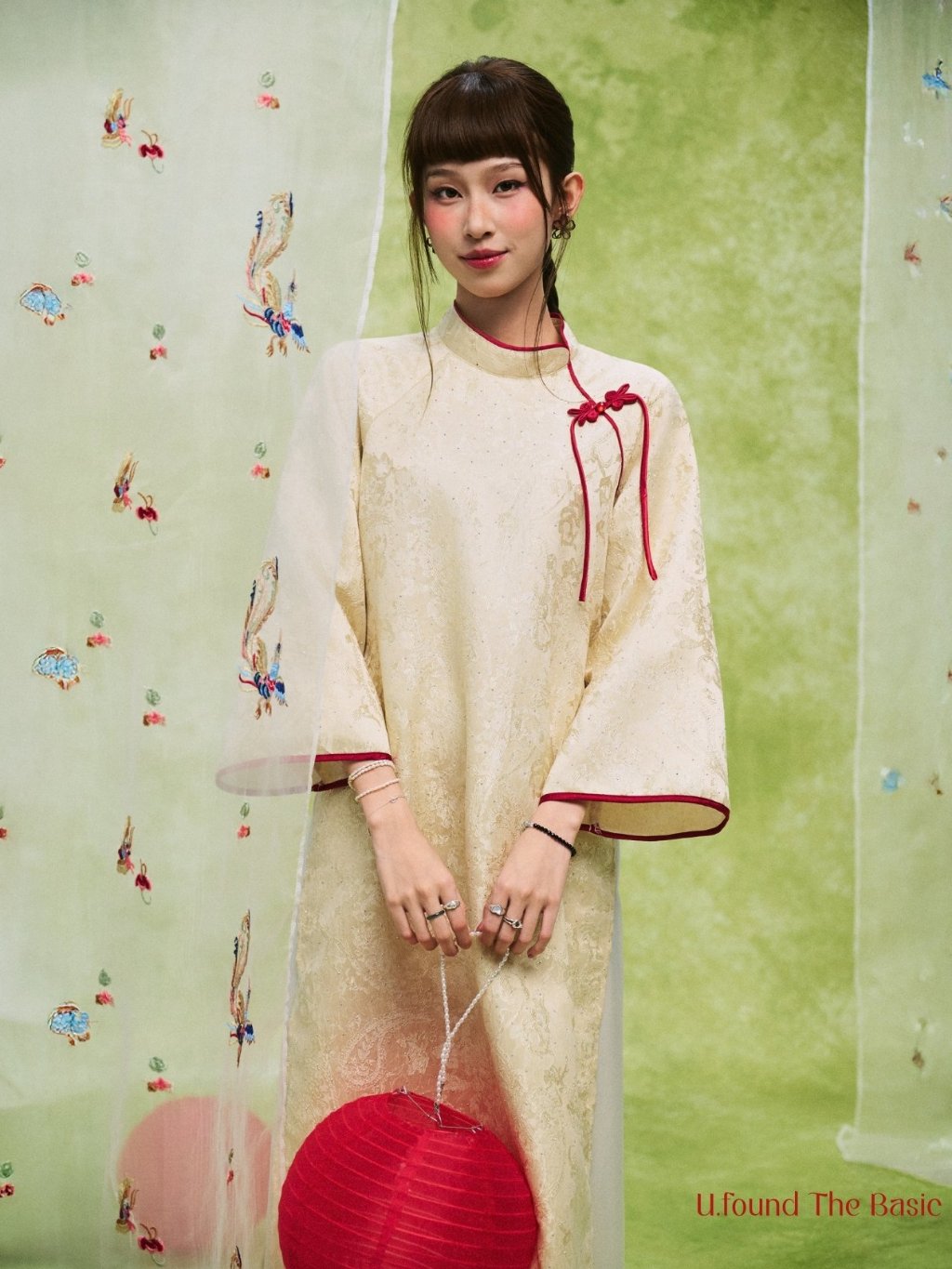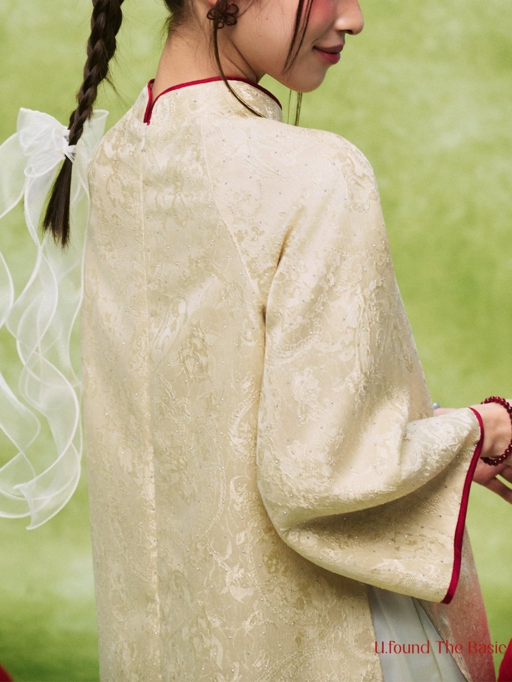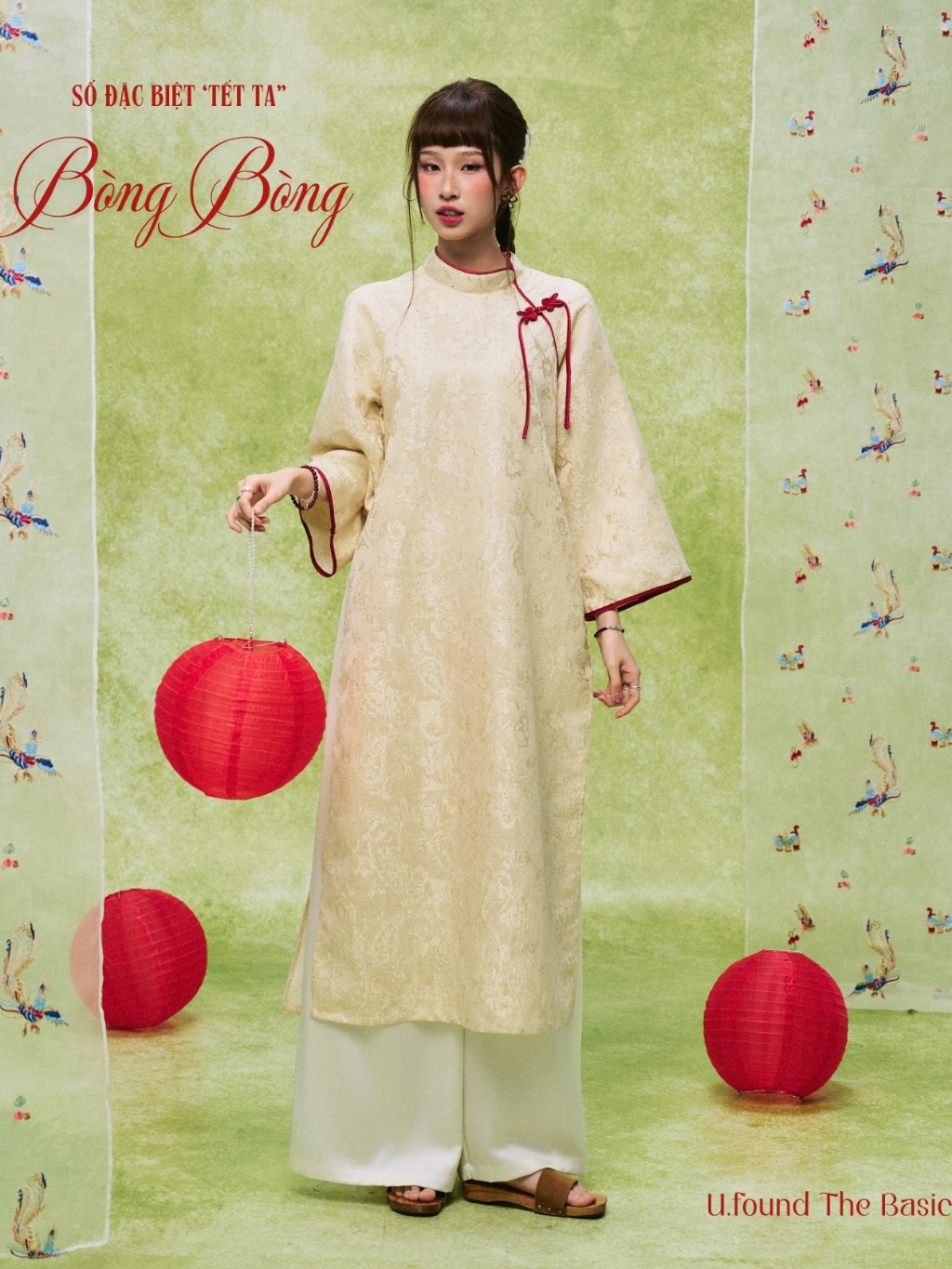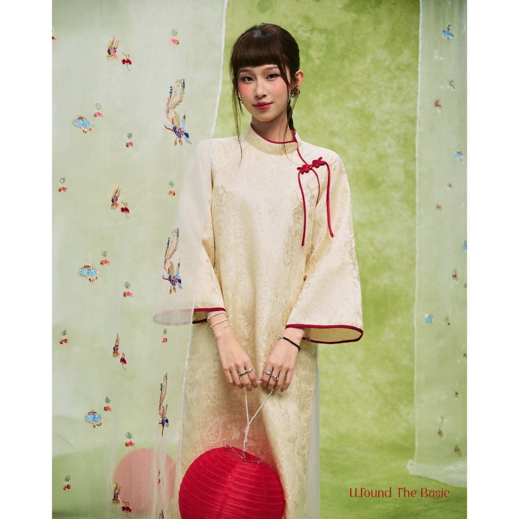 [𝘂.𝗳𝗼𝘂𝗻𝗱|𝗦𝗽𝗲𝗰𝗶𝗮𝗹 𝗟𝗶𝗻𝗲] Set áo dài Gấm đính đá họa tiết chìm form suông (tùy chọn quần lụa)