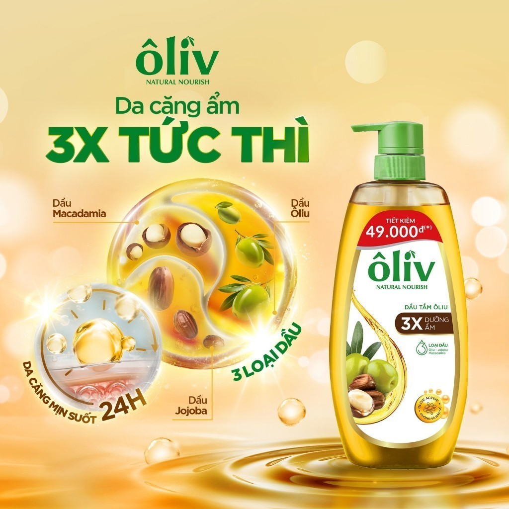 Combo Dầu Tắm Ôliv 1L và 2 Túi Sữa Tắm Dưỡng Ẩm Sáng Da/ Túi Dầu Gội Ngăn Rụng Tóc 350MLx2