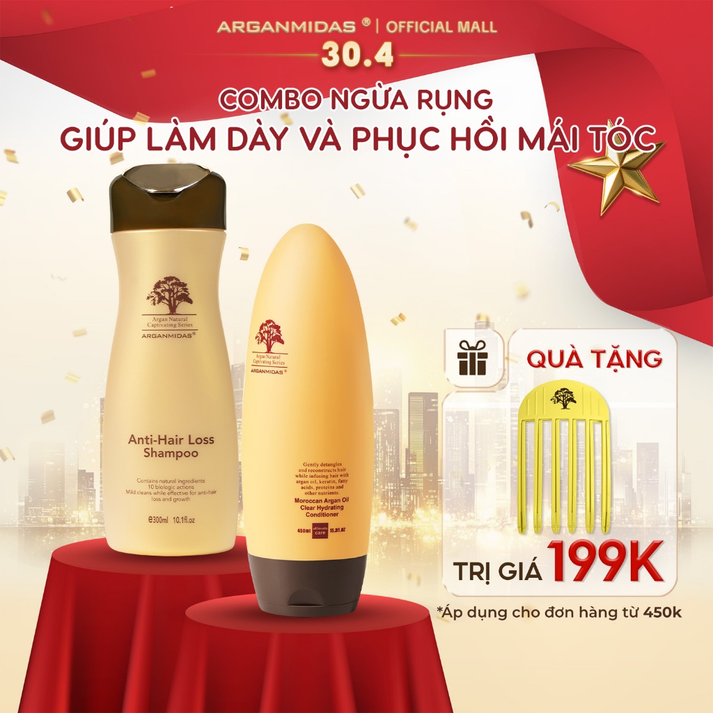 Dầu gội cặp kích thích mọc tóc Arganmidas tinh chất Argan Oil nuôi dưỡng tóc chắc khỏe, combo gội xả hỗ trợ dày tóc