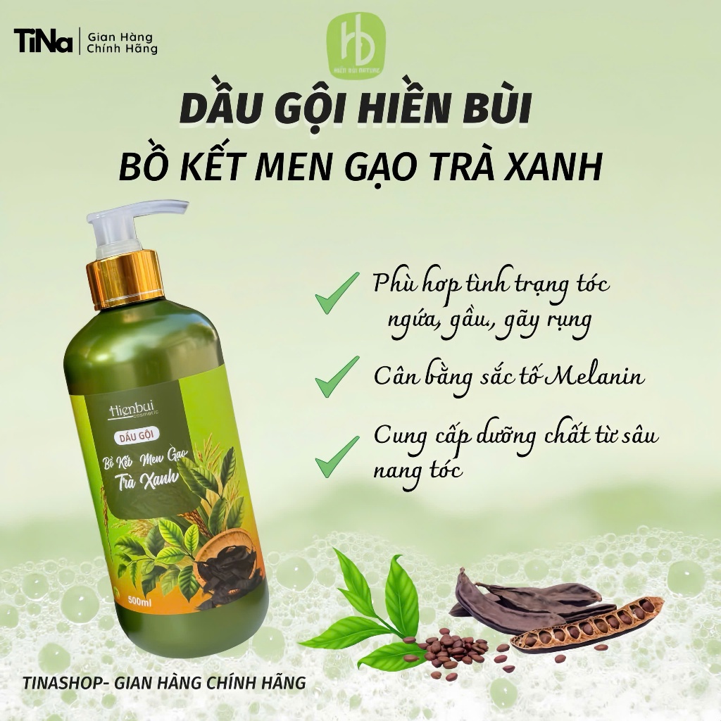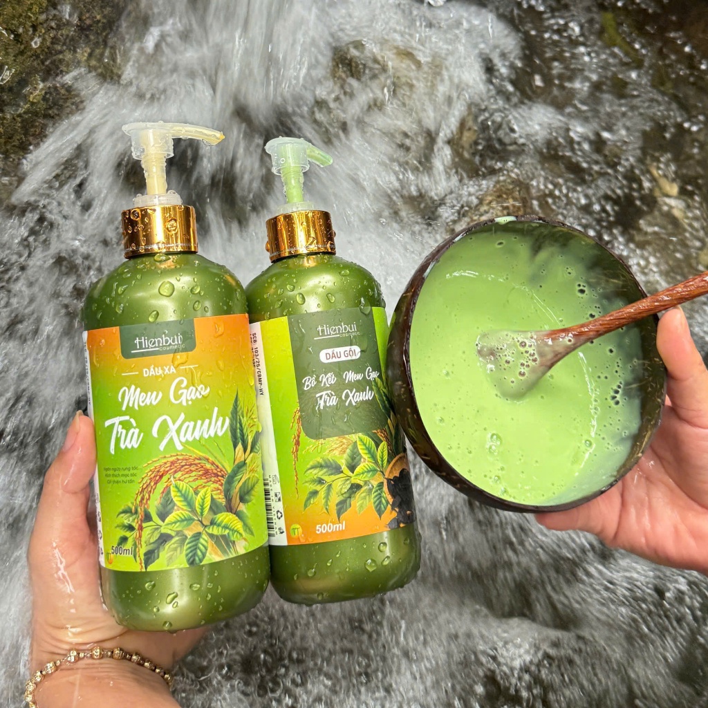 Dầu Gội & Xả Hiền Bùi Bồ Kết Men Gạo Trà Xanh 500ml Hỗ Trợ Giảm Rụng Tóc, Gầu, Bết ( Tặng Kem Ủ Tóc, Kẹp Tóc)