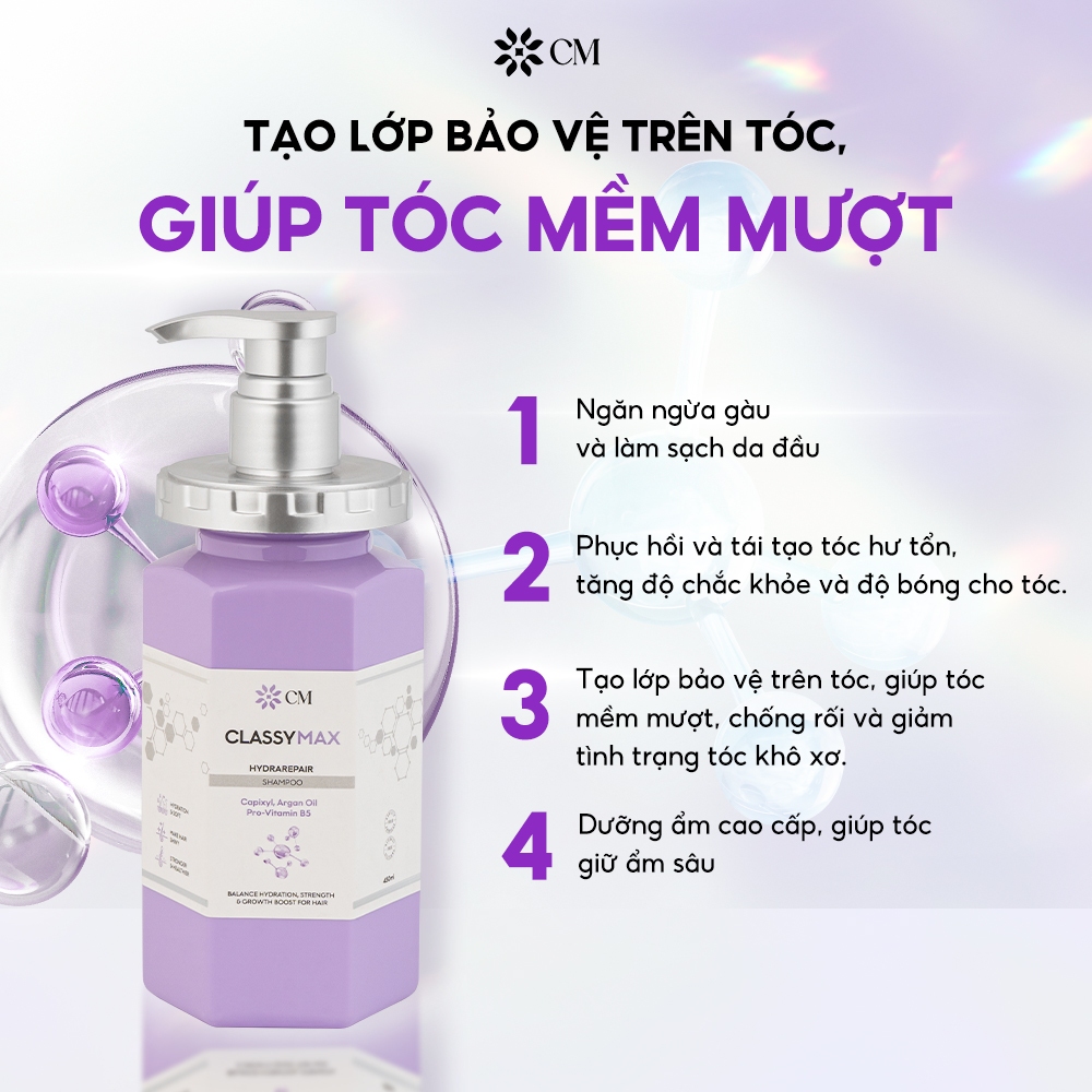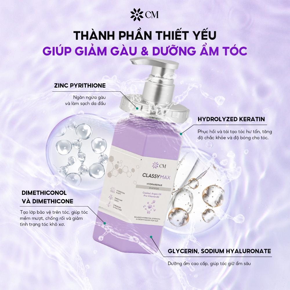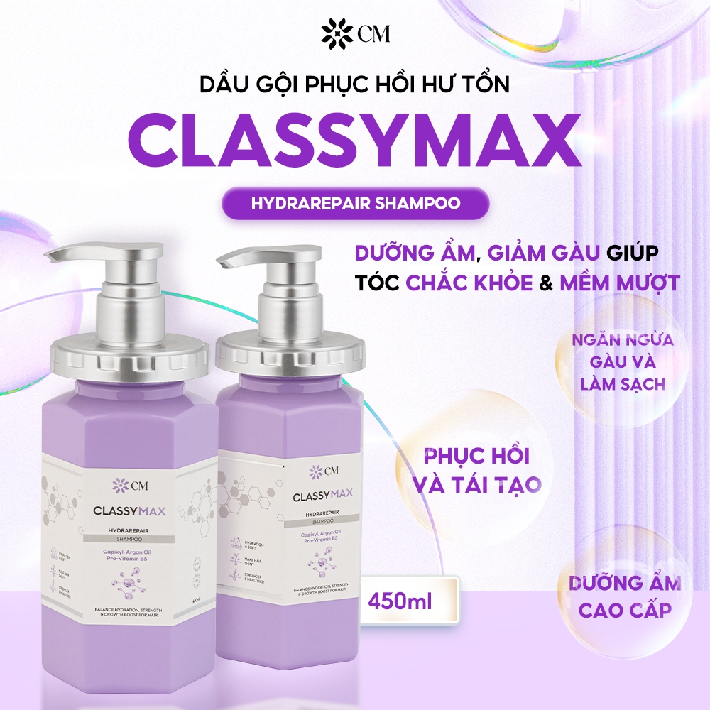 Dầu Gội Dưỡng Ẩm Da Dầu, Giảm Gàu, Chắc Khỏe Mềm Mượt Hydra Repair Shampoo ClassyMAX 450ml