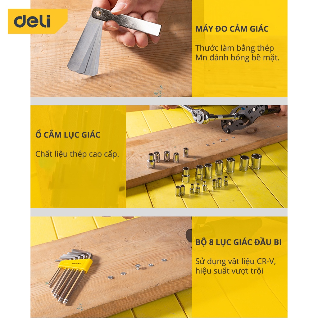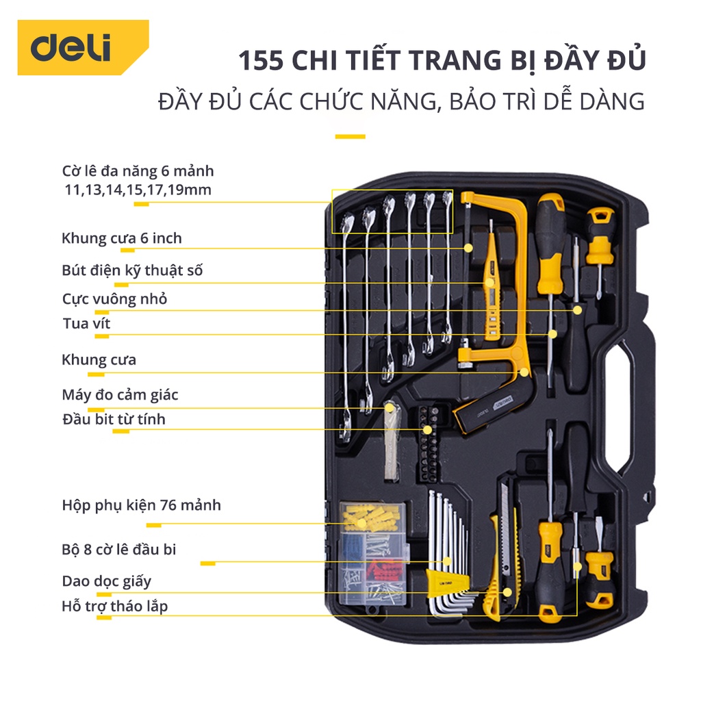 Hộp Dụng Cụ Sửa Chữa Đa Năng Deli 155 Chi Tiết - Chất Liệu Cao Cấp - Bộ Công Cụ Đa Dạng, Sử Dụng Nhiều Mục Đích - DL5967