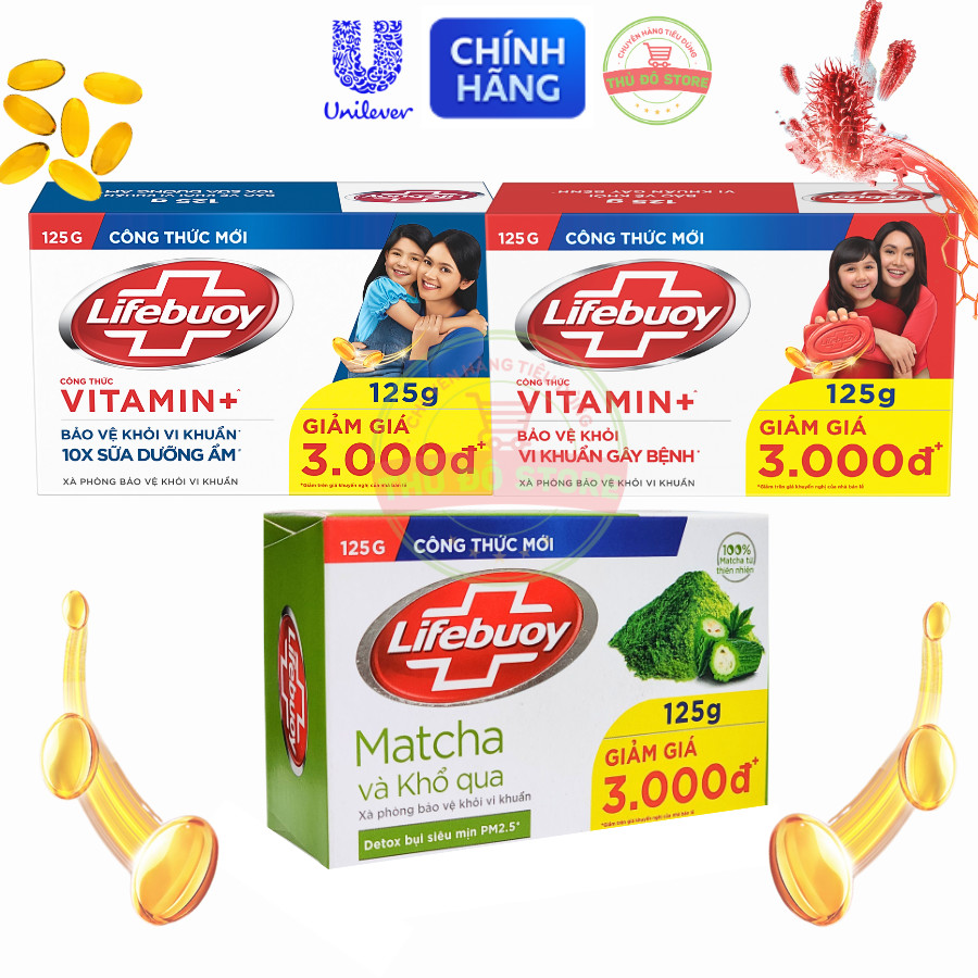 Bánh Xà Phòng Lifebuoy Với Vitamin+ Bảo Vệ Khỏi 99.9% Vi Khuẩn - Bánh To 125G (Tặng Túi Tạo Bọt Theo Đơn)