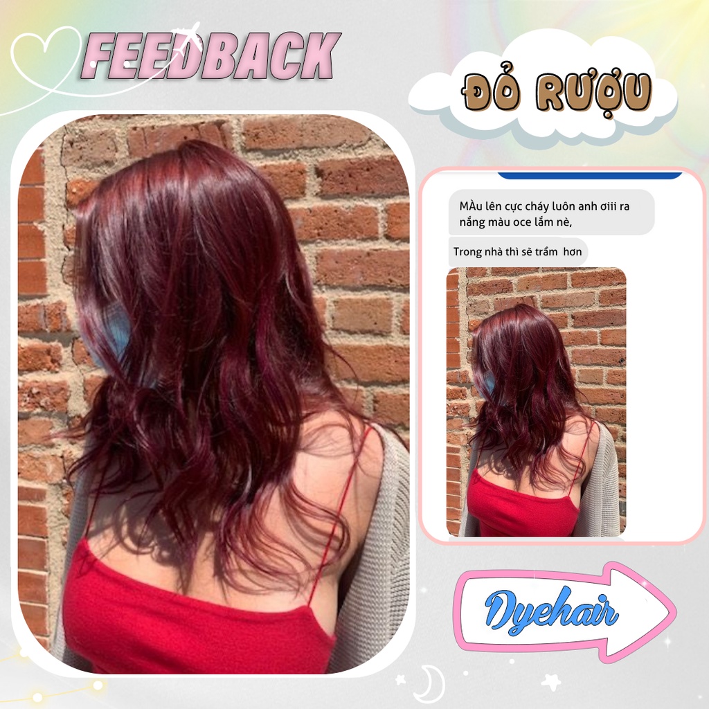 Thuốc nhuộm tóc, thuốc nhuộm tóc Đỏ Rượu, Dye.Hair, tặng kèm oxy trợ dưỡng và bao tay