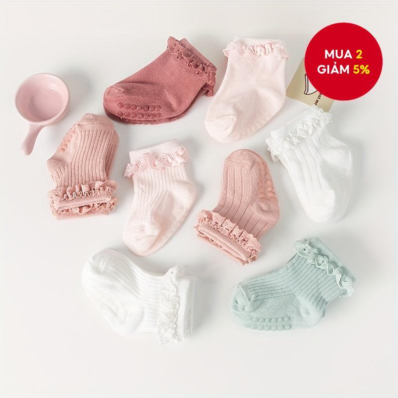 Tất mềm mại thoáng khí chống trượt cho bé gái thoải mái ấm áp mùa thu đông 4 đôi