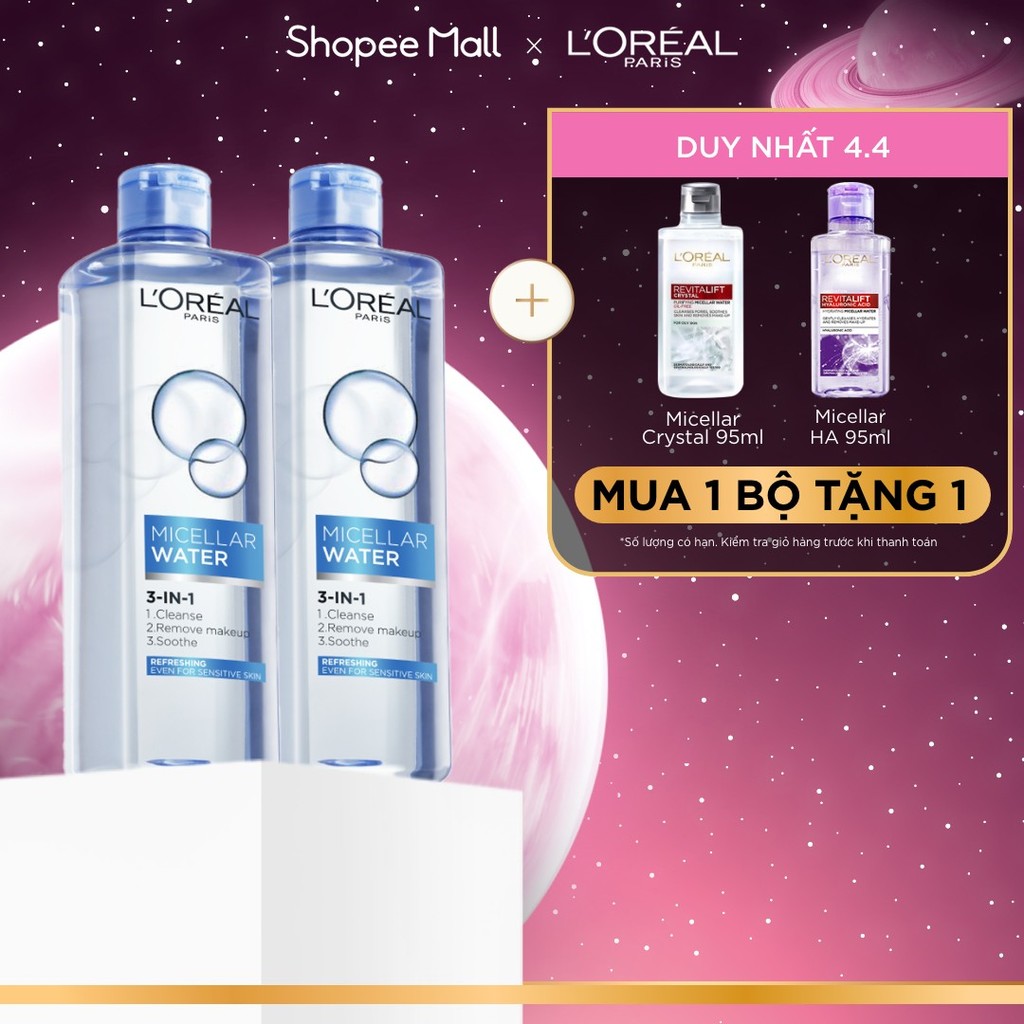 Bộ 2 nước tẩy trang đa năng 3in1 tươi mát L'Oreal Paris (xanh dương nhạt) 400ml