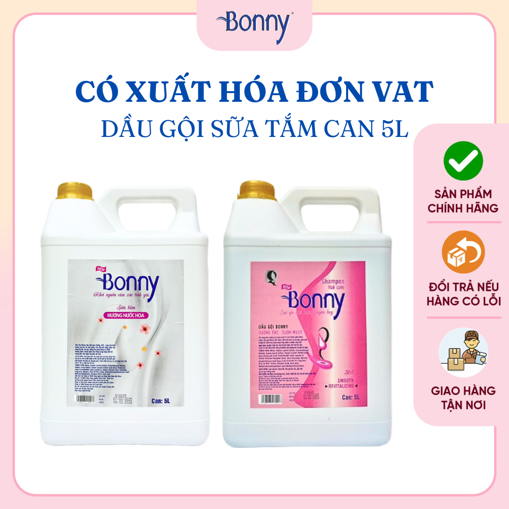 Can dầu gội, Can sữa tắm, can dầu xả 5 lít BONNY hương nước hoa dùng cho khách sạn, nhà nghỉ, hộ gia đình, Spa, Can 5L