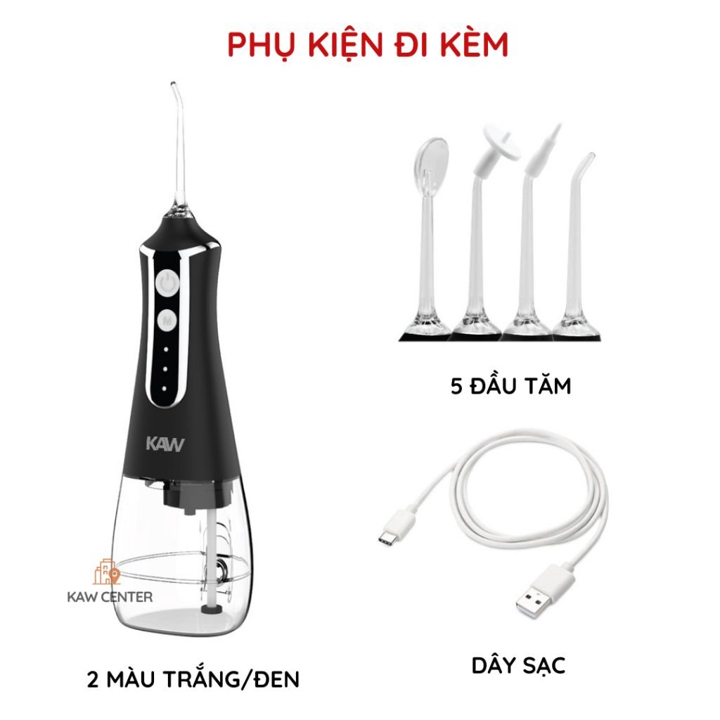 Tăm nước cầm tay KAW Cao Cấp–Vệ Sinh Răng Miệng Sạch Sâu, Động Cơ Khỏe, Chống Nước-Bảo Hành Uy Tín