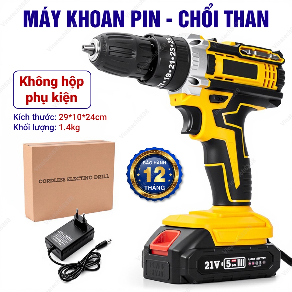 Máy Khoan Pin 21V Chổi Than Đa Năng – Máy Bắn Vít Cầm Tay Kèm Bộ Phụ Kiện 1 Pin Sạc – Công Suất Mạnh MKP-N105