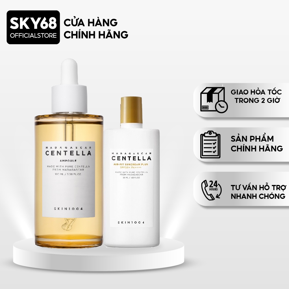 Combo 2 Sản Phẩm Giảm Mụn, Làm Dịu Da Chiết Xuất Rau Má Skin1004 Madagascar Centella (Serum 100ml + Kem chống nắng 50ml)