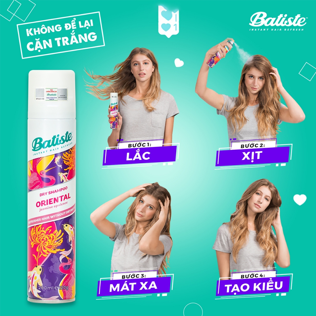 Dầu Gội Khô Batiste Hương Hoa Á Đông Sang Trọng Quý Phái - Batiste Dry Shampoo Pretty & Opulent Oriental 200ml