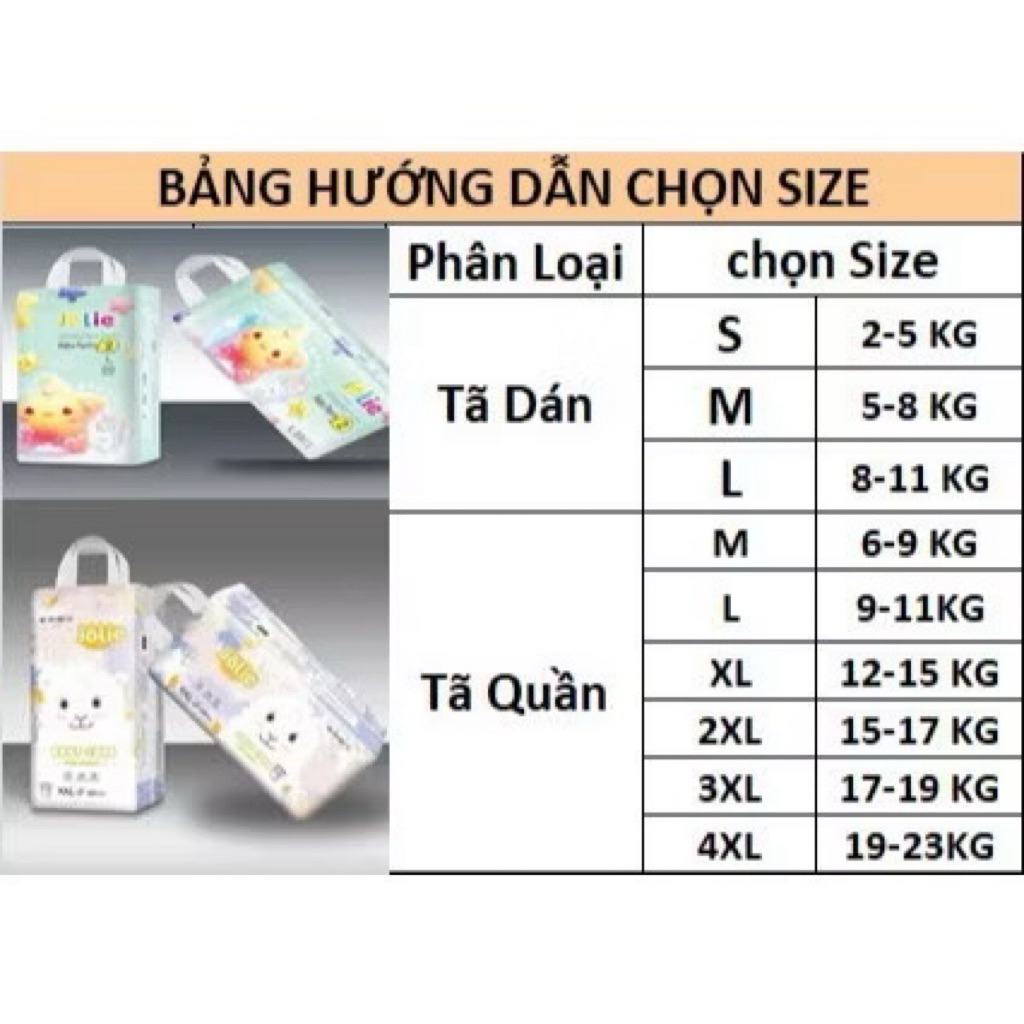 Bỉm jolie 100 miếng xuất anh đủ siez M, L, XL, 2XL, 3XL ,4XL