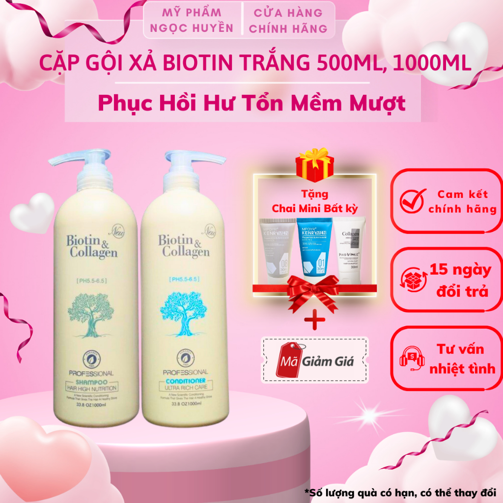 Dầu Gội Xả Biotin Collagen Trắng 500ml-1000ml Giảm Rụng Tóc, Kích Mọc Tóc, Phục Hồi Tóc Khô Xơ CHÍNH HÃNG