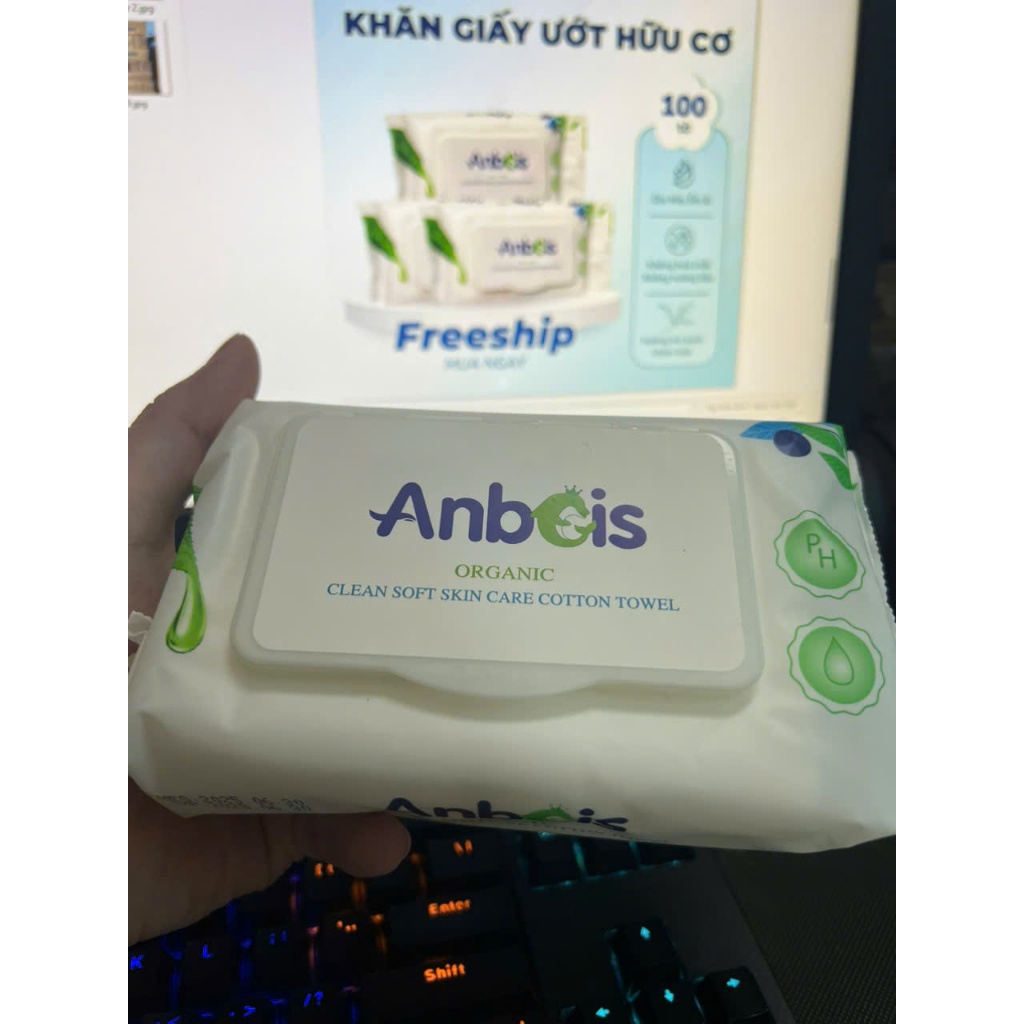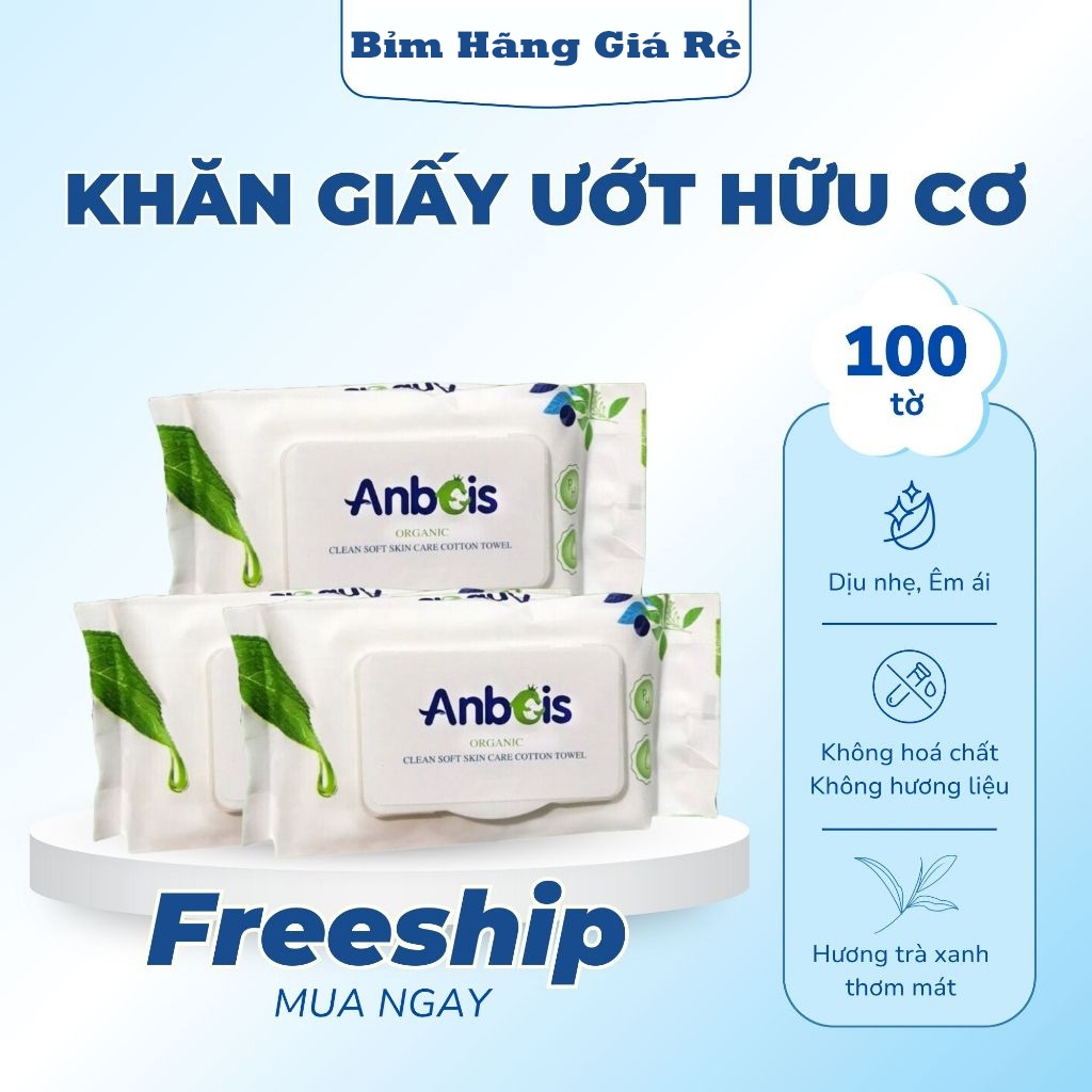 (FREESHIP) 1 thùng 15 gói Khăn giấy ướt Anbeis Organic cao cấp – hữu cơ, mềm mịn, an toàn cho da
