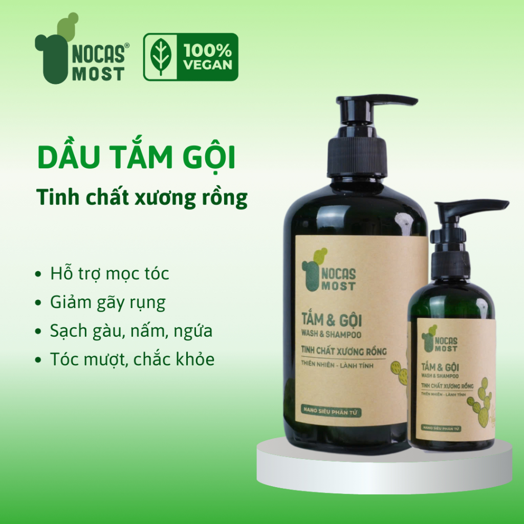 Dầu tắm gội thiên nhiên Nocas Most chiết xuất Xương rồng giảm rụng tóc, giúp tóc chắc khỏe,bóng mượt