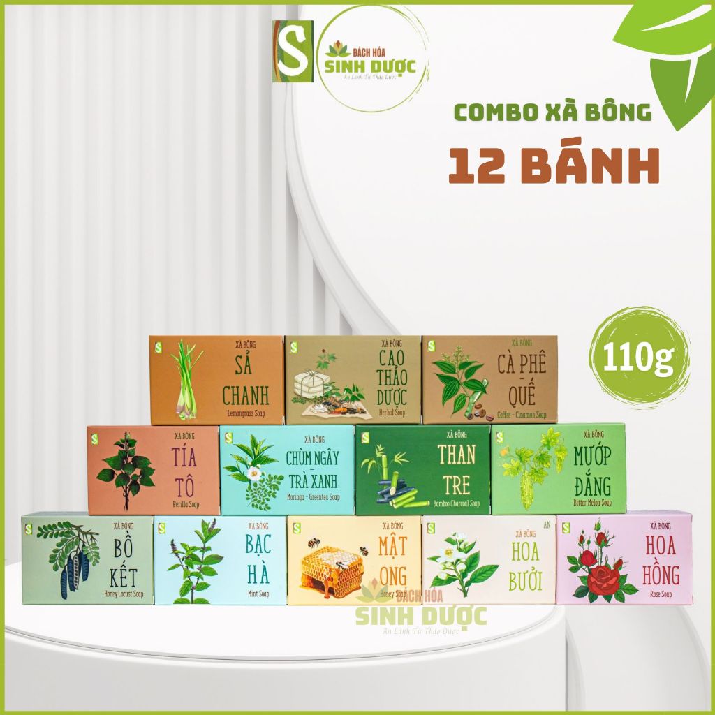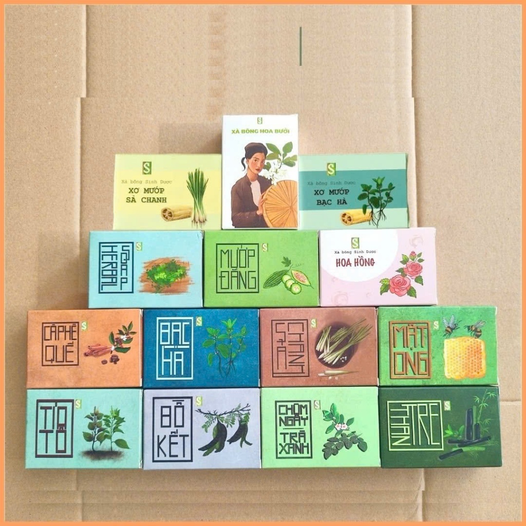 COMBO 10-14 bánh xà bông HTX Sinh Dược, xà phòng mướp đắng, mật ong thiên nhiên, tặng kèm túi lưới