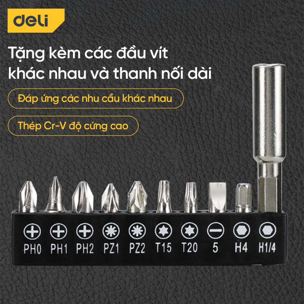 [Tặng phụ kiện] Máy tua vít pin Deli Tools dạng gập duỗi 2 chiều - Bộ vặn vít tháo vít