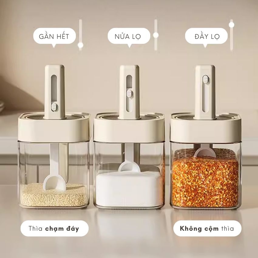 Lọ gia vị thủy tinh có thìa điều chỉnh FEEKA chống ẩm, hũ đựng gia vị thủy tinh thông minh 300ml