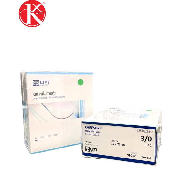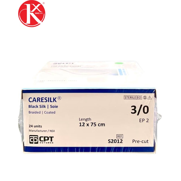 CHỈ PHẪU THUẬT KHÔNG TIÊU (KHÔNG KIM) CPT CARESILK SILK số 3/0 - S2012 (hộp 24 tép)