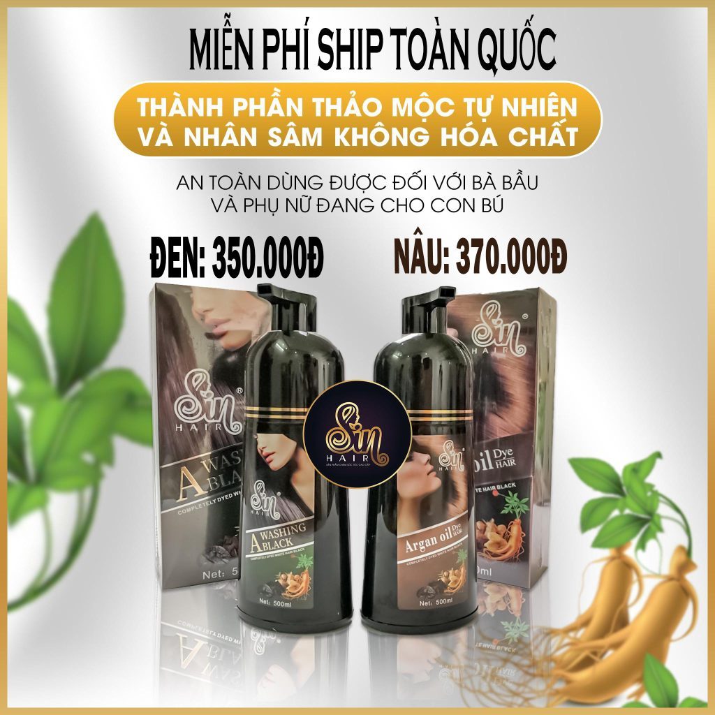Dầu gội đổi màu tóc Sin Hair 500ml đen và nâu nhân sâm tự nhiên