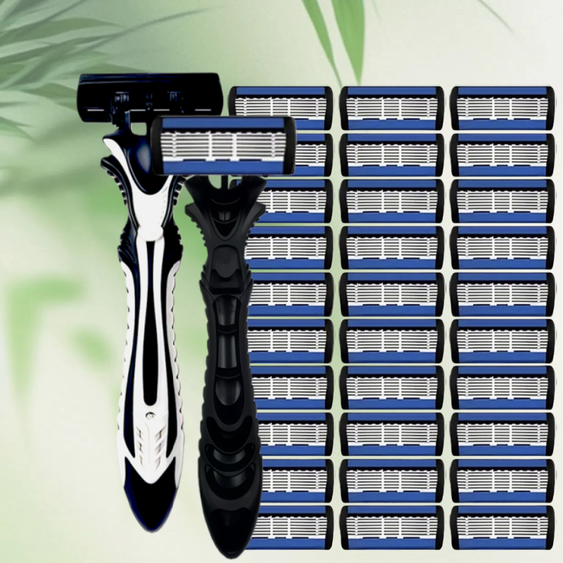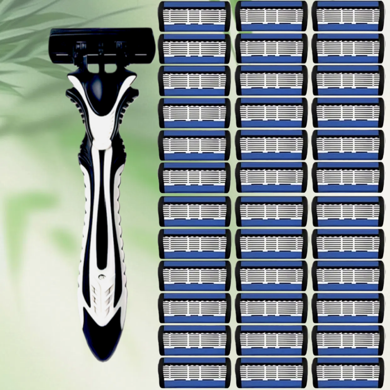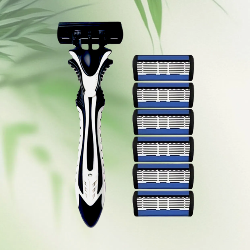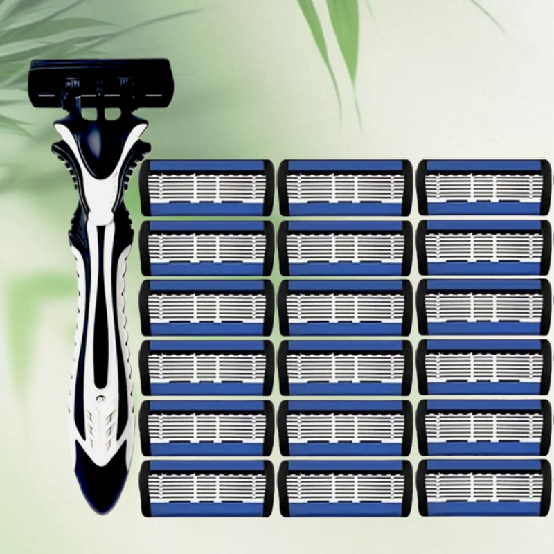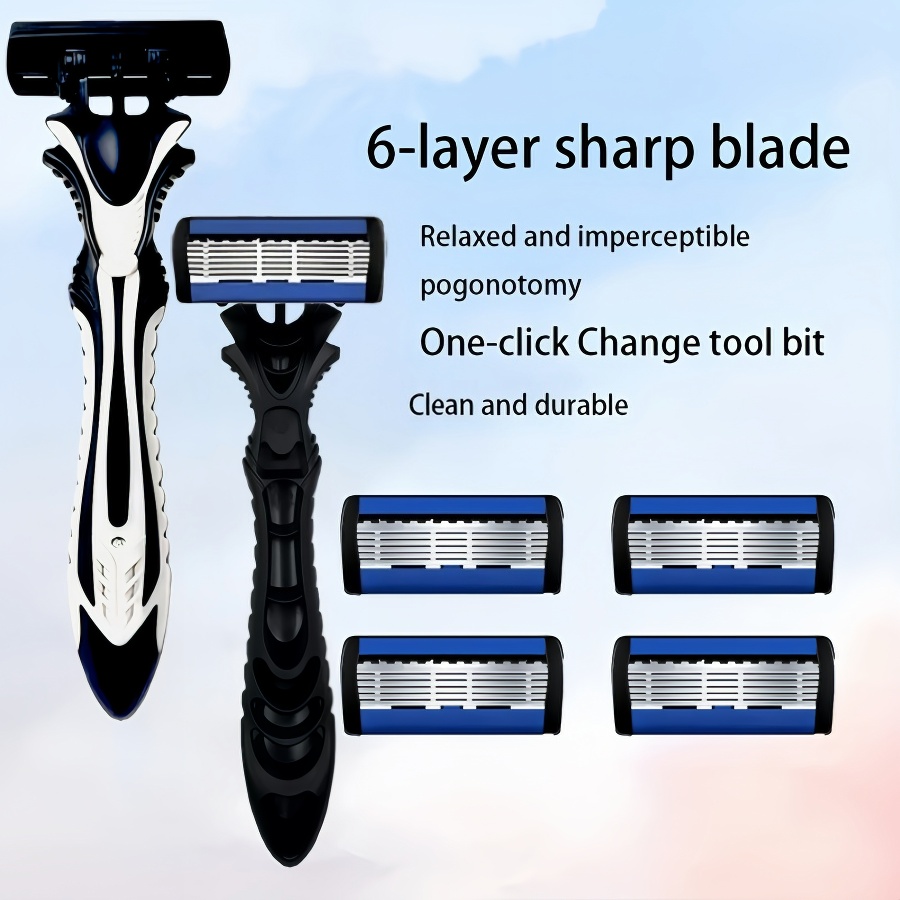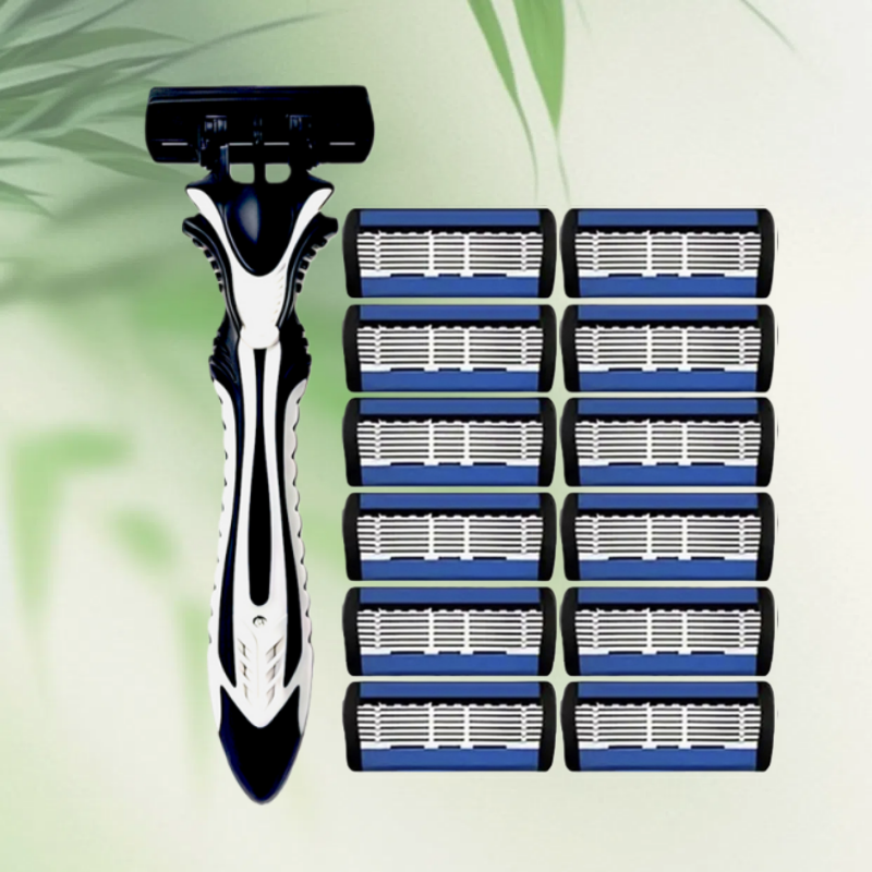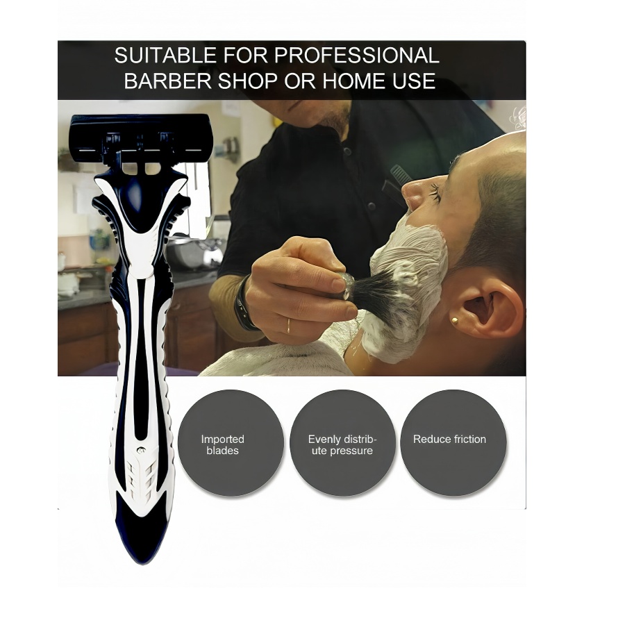 Bộ dao cạo thủ công mới cho nam và nữ, lưỡi thép không gỉ 6 lớp, chất liệu an toàn và chống gỉ, lưỡi dao thay thế được.
