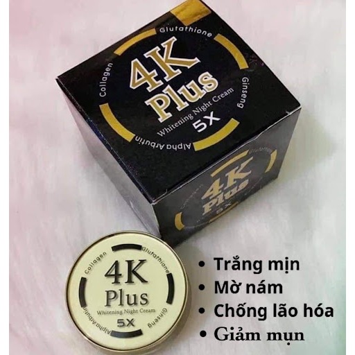 Kem dưỡng trắng da mặt 4K Plus 5X dưỡng trắng da nâng từ 2-4 tone đều màu mờ thâm sạm phục hồi chống lão hoá.