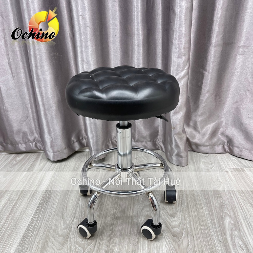 Ghế Xoay cắt tóc gội đầu Mẫu Múi Vuông Chân Bánh Xe Vàng Sao Cao 40-50Cm (Hàng Sẵn)