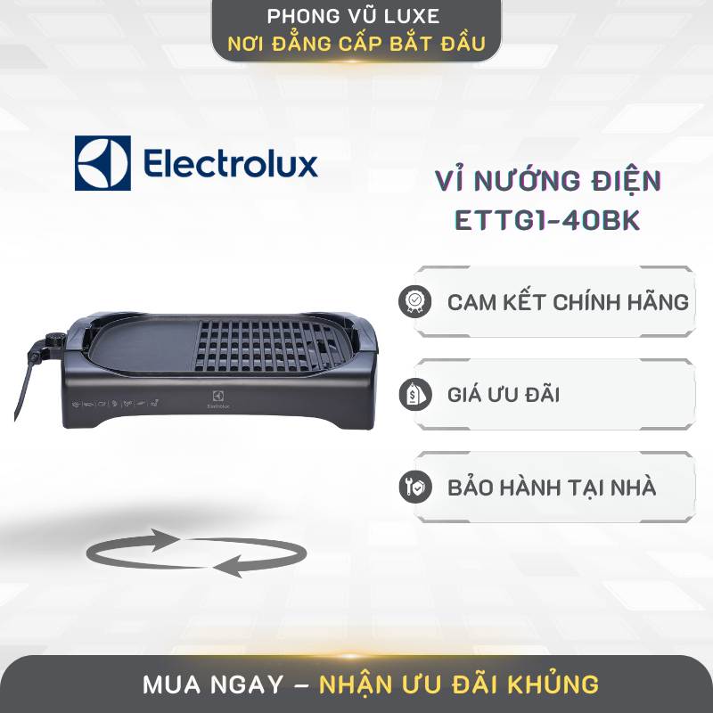 Vỉ Nướng Điện Electrolux ETTG1-40BK 2200W – Nướng Nhanh, Không Khói, Tiện Lợi