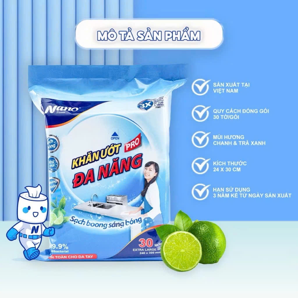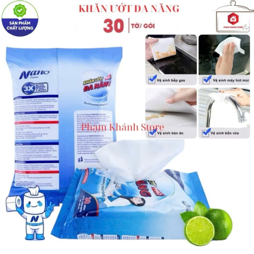 Khăn Giấy Uớt Lau Bếp Khử Mùi An Toàn Nano - Khăn Ướt Đa Năng Kháng Khuẩn