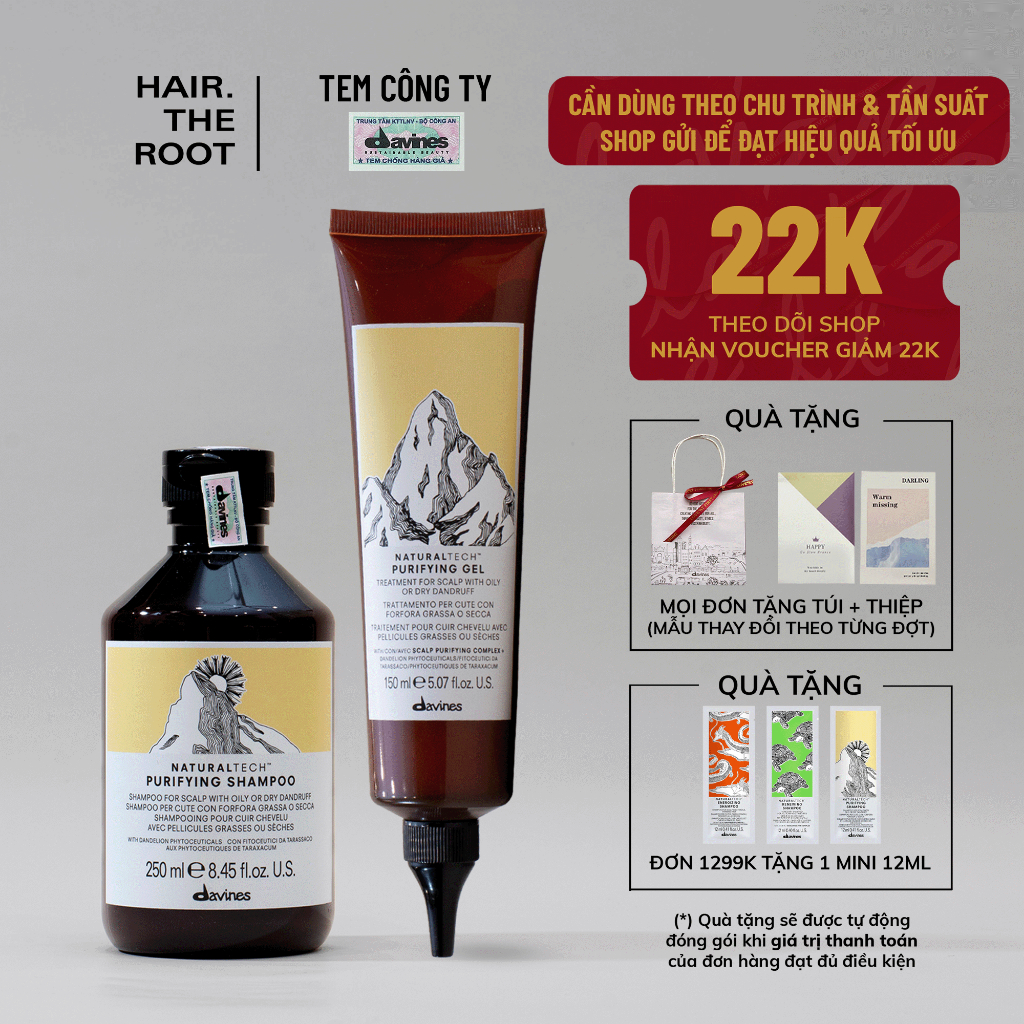 Dầu Gội, Gel Giảm Gàu Ngứa, Ngăn Ngừa Gàu Davines Purifying Dành Cho Nam, Nữ - Hàng Công Ty