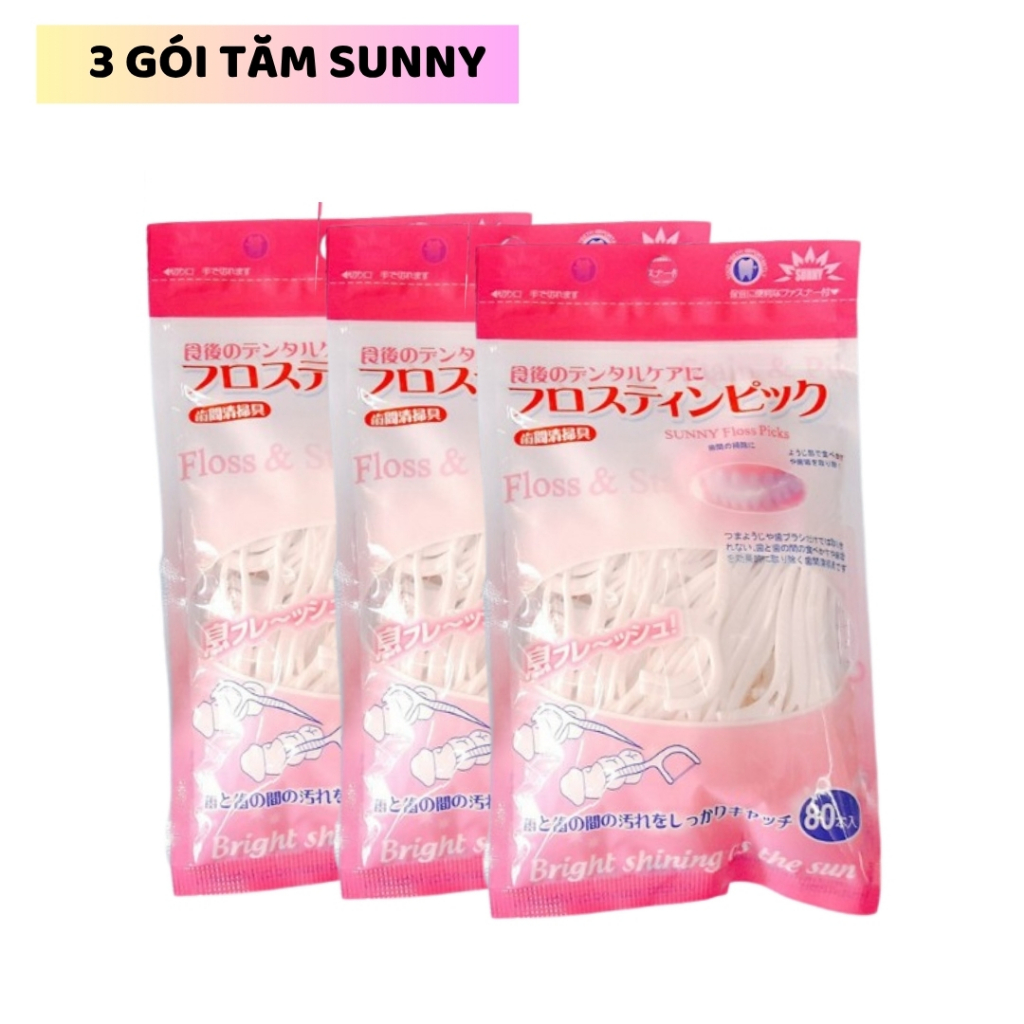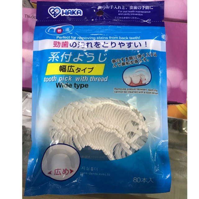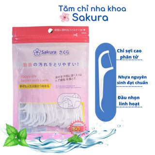 Tăm chỉ nha khoa Nhật Bản Sakura - Sunny - Haka gói 50 và 80 cây, sợi chỉ nhỏ, an toàn.