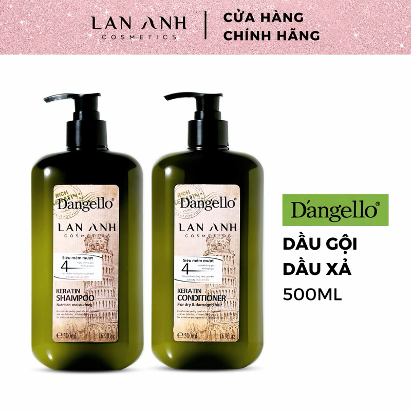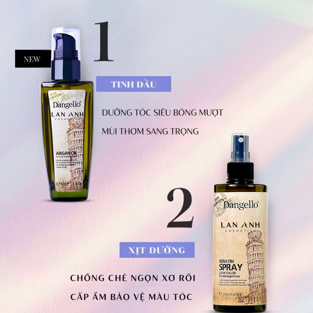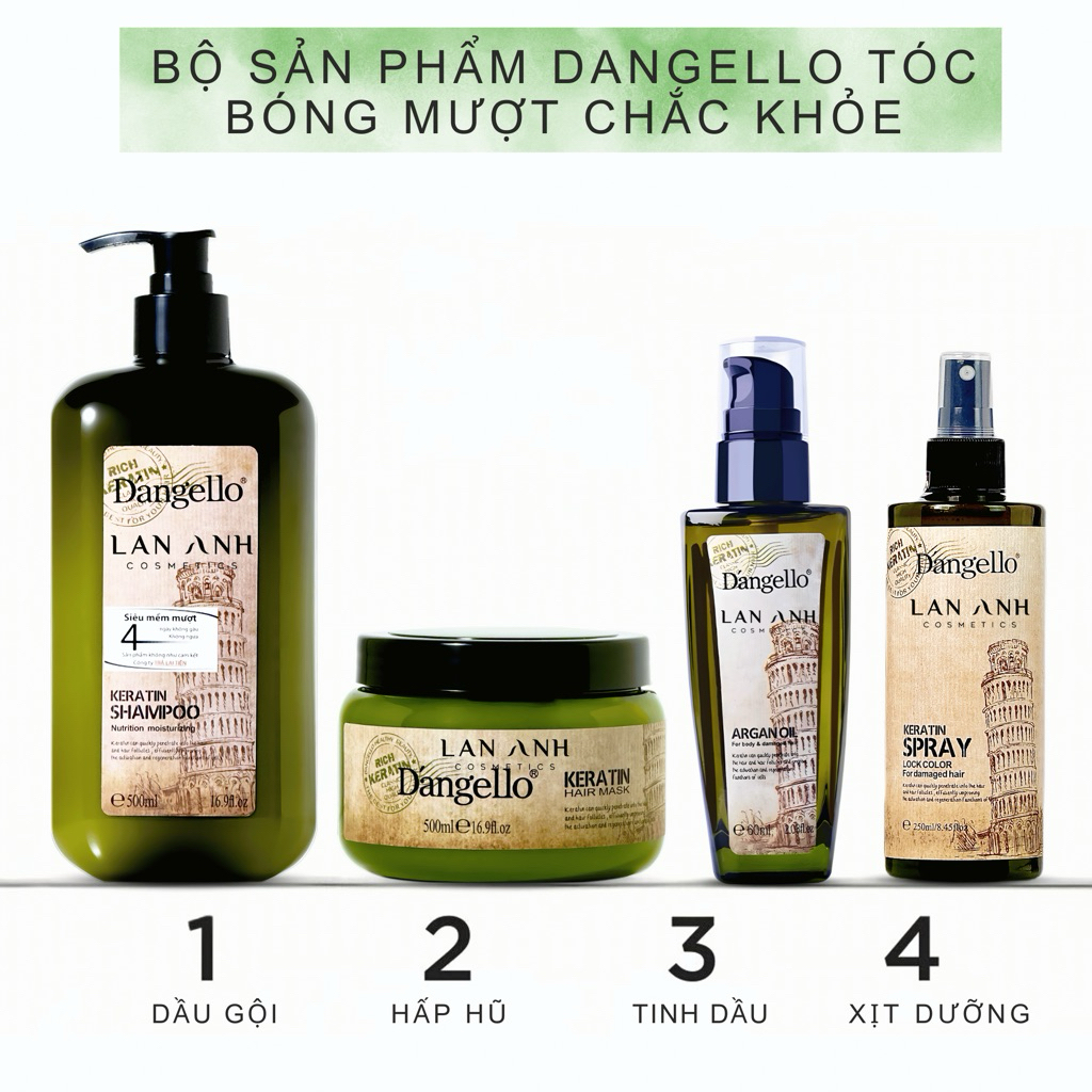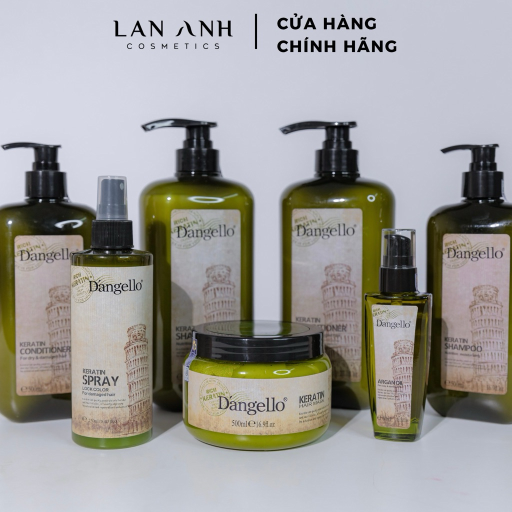 Dầu gội, dầu xả, tinh dầu, dầu hấp Dangello Keratin phục hồi tóc hư tổn giảm gãy rụng 60/800ml