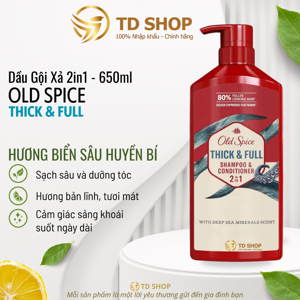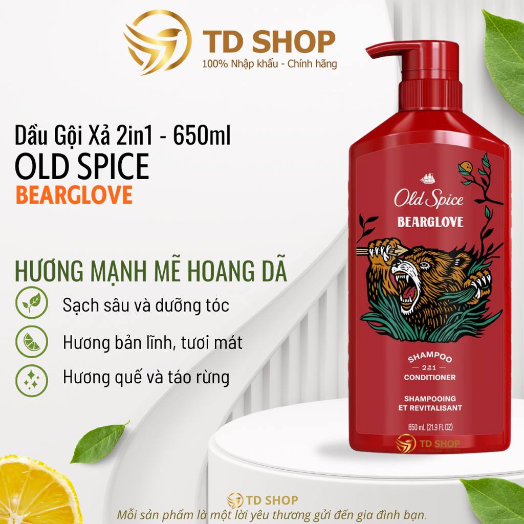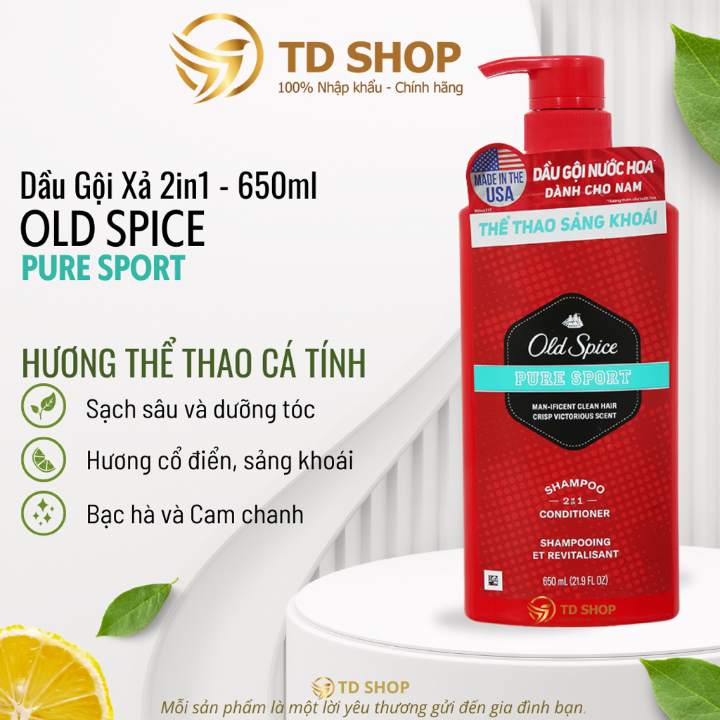 [NK Mỹ] Dầu Gội OLD SPICE 2in1 Hương Nước Hoa Cho Nam 650 ML Thick & Full | Bearglove | Pure Sport - TD Shop