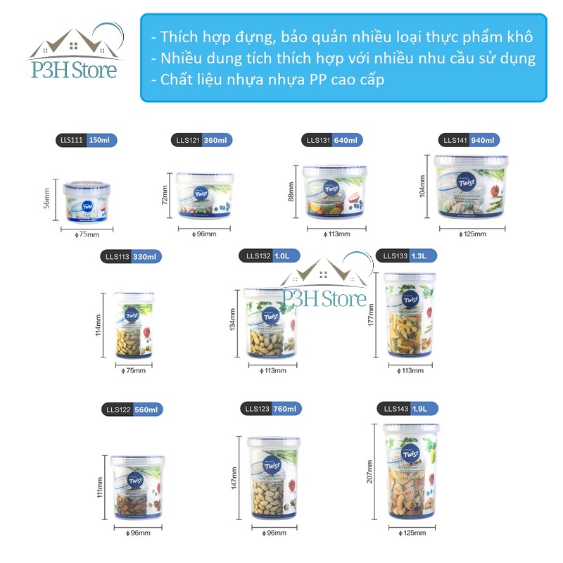 Hộp nhựa nắp vặn Lock&Lock Twist bảo quản thực phẩm nhiều dung tích LLS111 LLS121 LLS131 LLS141 LLS122 LLS113 LLS143